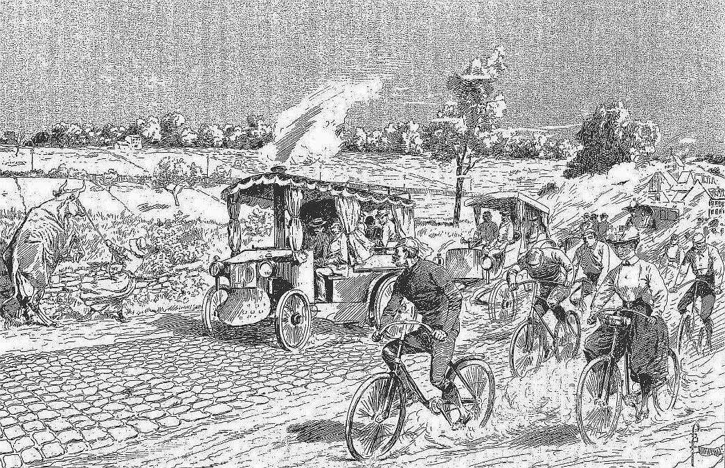Jules-Albert de Dion, další ze slavných konstruktérů a zakladatel francouzského autoklubu, byl o tři a půl minuty rychlejší, jenže se svým parním strojem nesplňoval regule. Chyběl mu topič, tedy člověk, který přikládá pod kotlem. Podivné pravidlo, nicméně všechno se nakonec vyřešilo v přátelském duchu.