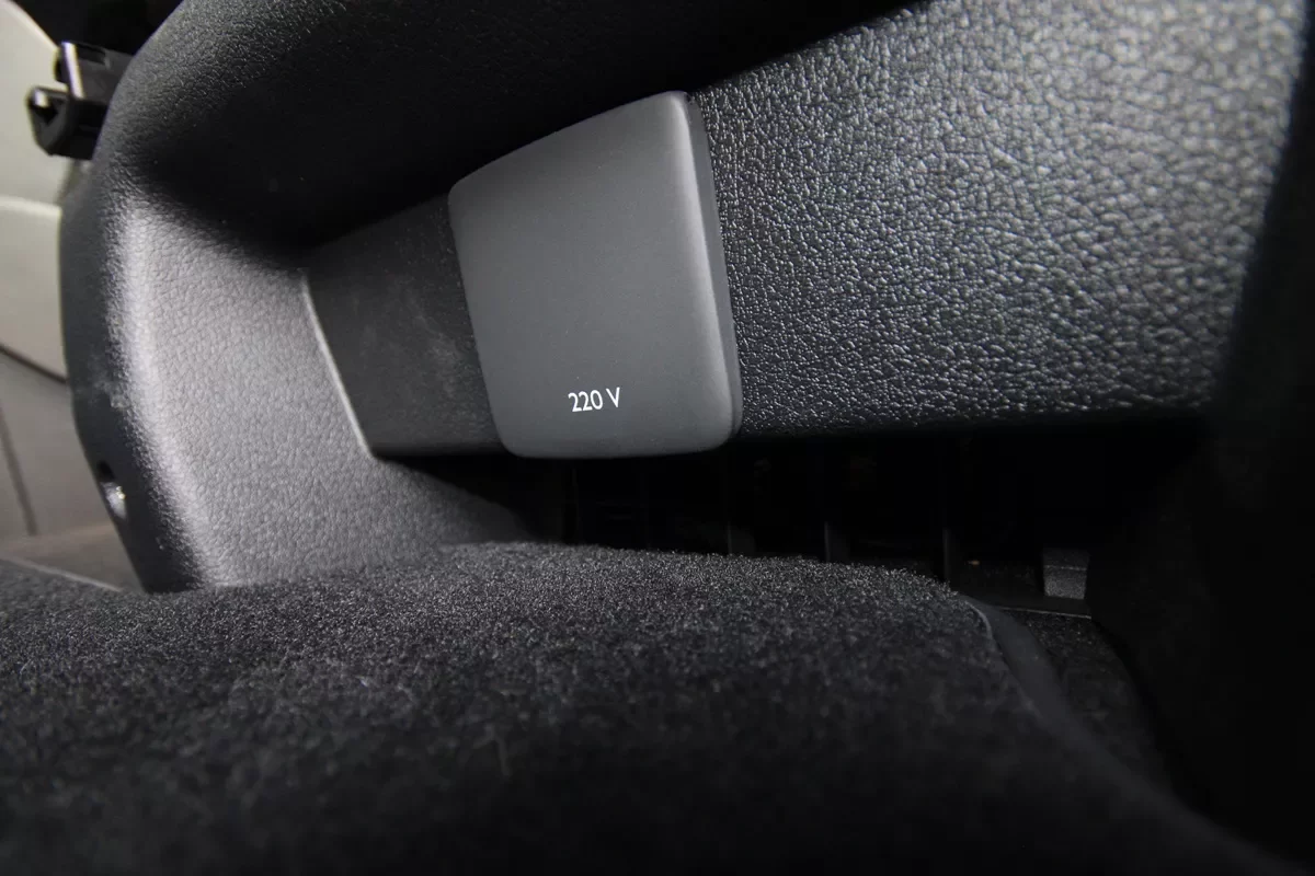 Co by to bylo za užitkáč, kdyby neskrýval alespoň jednu pořádnou 220voltovou zásuvku. Rychlovarnou konvici ani vysavač pro úklid během kempování si do ní nepřipojíte, ale notebook nebo jiné na odběr proudu nenáročné elektronické zařízení bez problémů „utáhne“. A to přijde vhod, pokud cestujete s dětmi na dlouhou vzdálenost a chcete je zabavit nebo jenom potřebujete na chvilku proměnit Travellera v pojízdnou kancelář.