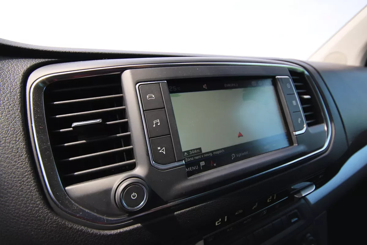 S tím úzce souvisí i ovládání multimediálního systému, další bolístky peugeotů posledních let. Opět platí, že čím levnější a jednodušší model, tím lépe pro řidiče z uživatelského hlediska. Infotainment Travelleru je jednoduchý a nehýří žádnými výstřelky, přesto se nemusí za nic stydět. Grafika je pěkná, navigace funguje obstojně, rychlost odezvy je normální a fyzická tlačítka po stranách, která odkazují na hlavní funkce, jsou nenahraditelná stejně jako kolečko na ovládání hlasitosti muziky.