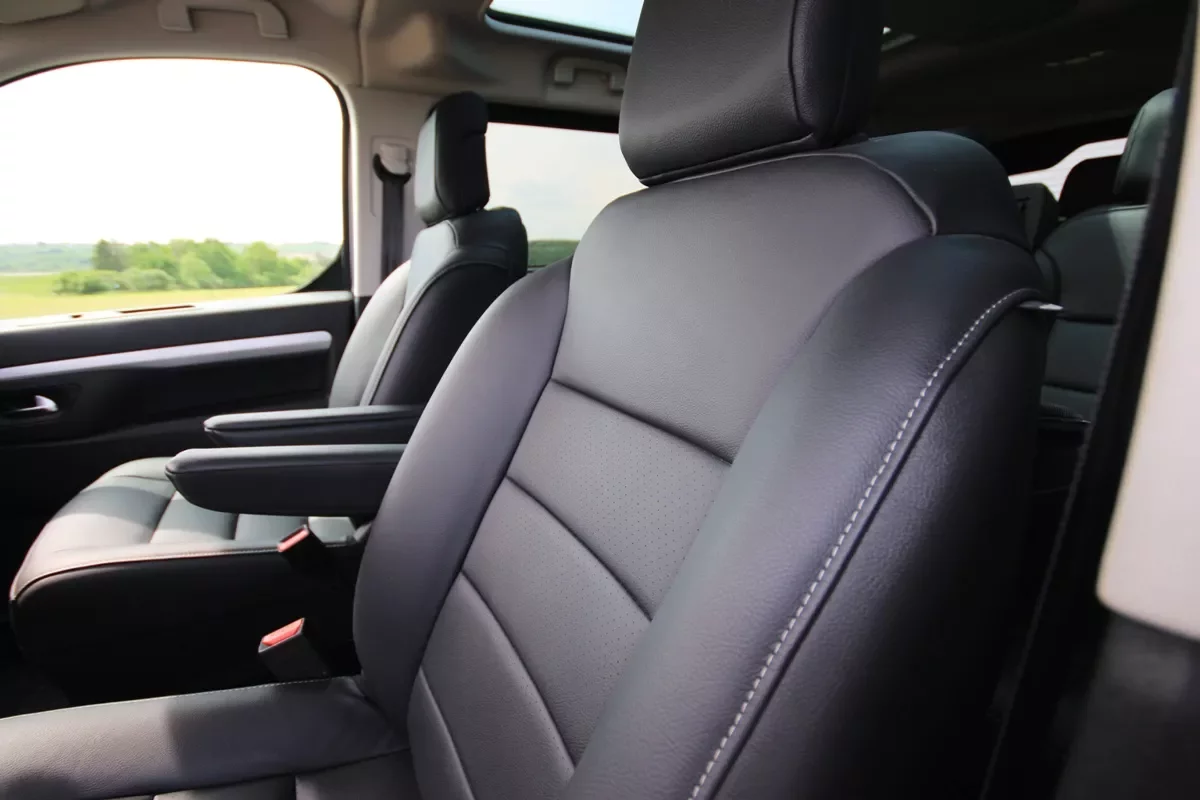 Kožené čalounění je záležitostí spíš luxusních dodávek typu Mercedes třídy V než užitkáče francouzské provenience. Přesto si můžete dopřát kousek přepychu v podobě kožených sedaček, pochopitelně všech osmi, i na palubě Travelleru. Navíc už od pohledu to není žádná lacinka, ale příjemná a kvalitní kůže, pěkně vyvedená, která dává pocit, že skutečně nevyjde levně.