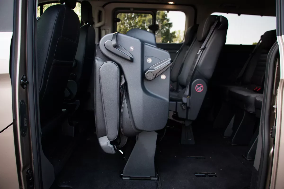 Ford ovšem lépe vyřešil sklápění prostřední řady pro přístup na zadní řady. Obě krajní sedadla lze totiž úplně překlopit vpředu, podobně jako v kupé, takže dozadu nastoupíte bez problémů. V Travelleru musíte sklopit opěradlo a posunout celé sedadlo dopředu, abyste vytvořili větší prostor pro nastoupení. A kufr má Ford také větší – 1 200 litrů oproti 507 litrům, v případě dlouhých verzí obou aut to dělá 1 900 vs. 912 litrů ve prospěch Fordu.