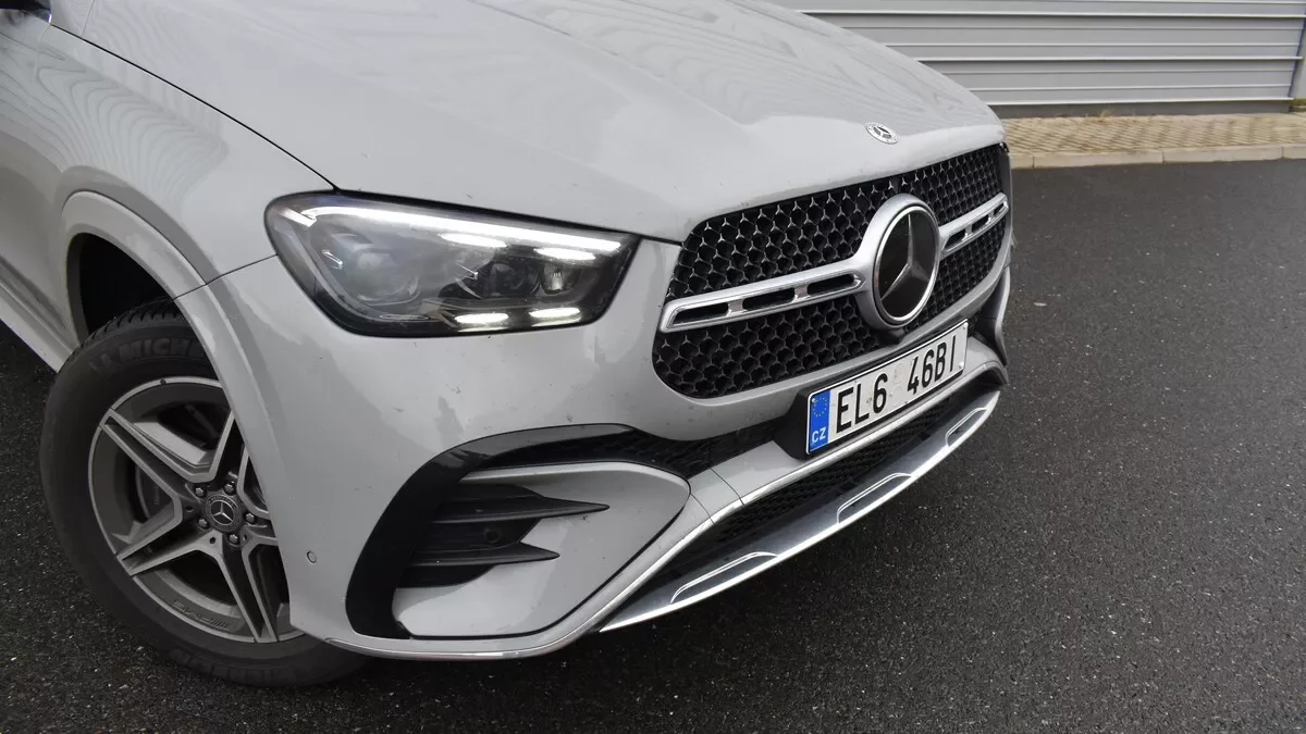 Zpět ale k testovanému. Přídi vévodí velké logo automobilky a drobné trojcípé hvězdy jsou systematicky poskládané po celé přední masce. Ale jinak musím konstatovat, že testovaný AMG paket byl snad ten nejméně nápadný, co jsem kdy na mercedesu viděl. Hodně tomu pomohla šedá barva, známá hlavně z koncernových škodovek či audin, která sice není dynamická, ale je stylová (za příplatek 93 025 Kč) a především dvacetipalcová pětipaprsková kola. Říká se, že kola dělají auto, a tady to rozhodně platilo. Z GLE udělala usedlejší stroj.