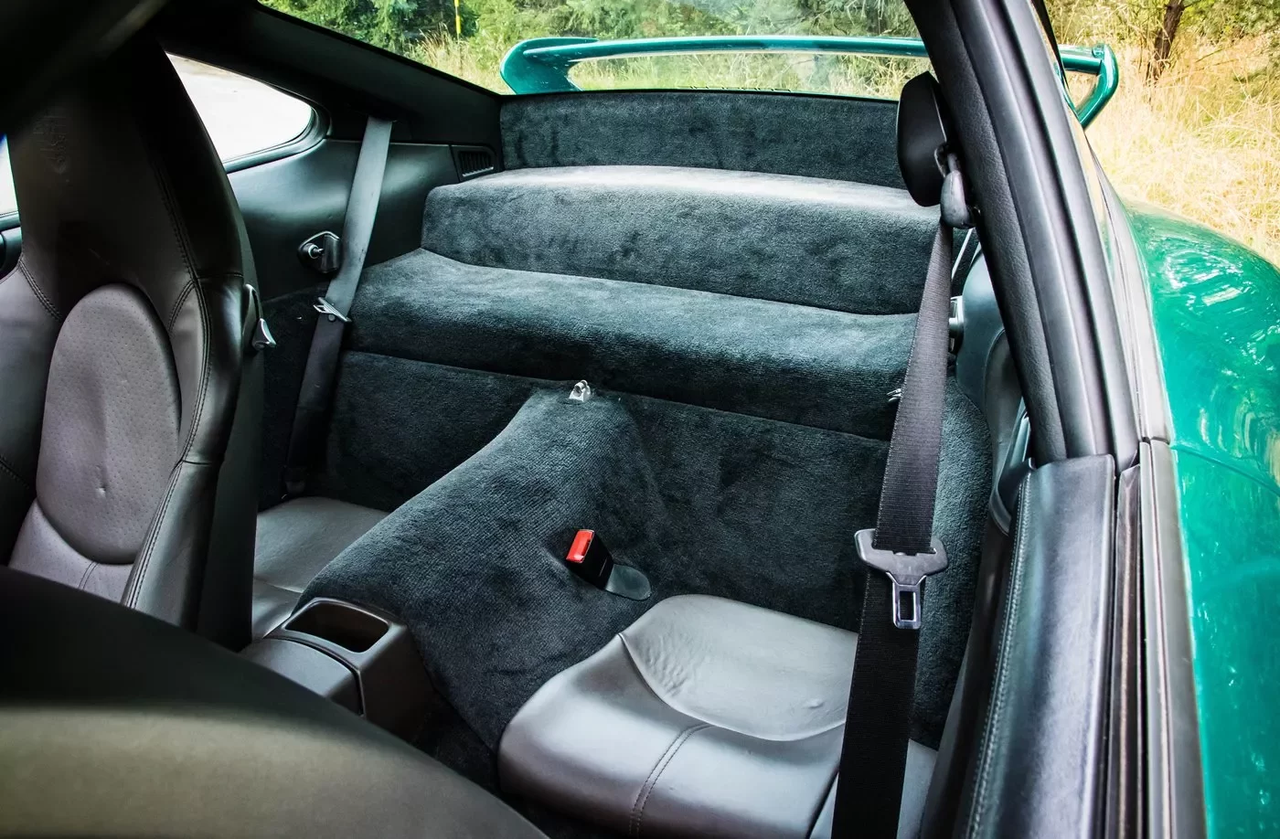 Hnědý kožený interiér příliš nestárne a vypadá moderně i dnes. Věnec volantu je hodně tlustý, úzká sportovní sedadla obepínají celé tělo a zadní sedačky jsou pouze nouzové. Více než na převážení pasažérů se hodí jako odkládací prostor pro bundu. V testovaném autě už dokonce chybí jejich opěradlo, což na pohled dělá 911 ještě více puristickou.