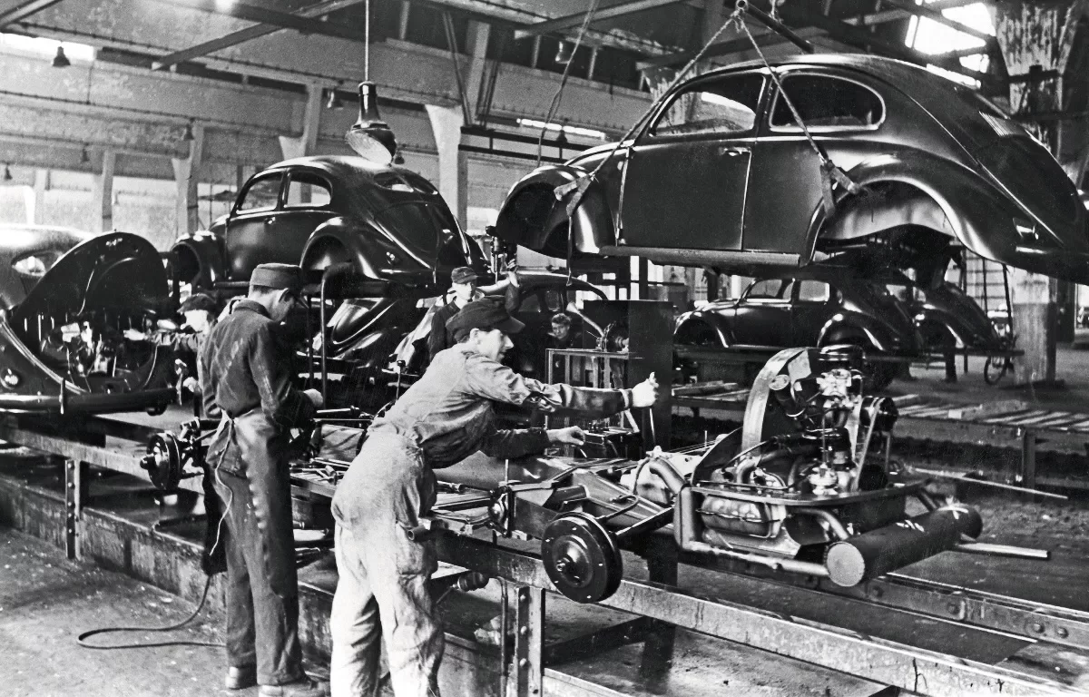 Civilní sériová výroba Volkswagenu, který měl interní označení Typ 1 a později dosáhl celosvětového věhlasu jako „Brouk“, začala až po skončení války dne 27. prosince 1945, a to pod správou britské vojenské vlády, která převzala společnost Volkswagenwerk GmbH v červnu 1945. Záměrem Britů bylo zajistit výrobou vozidel Volkswagen Typ 1 nezbytnou dopravu v rámci okupační zóny. Tento pragmatismus zachránil výrobní závod před hrozící demolicí.