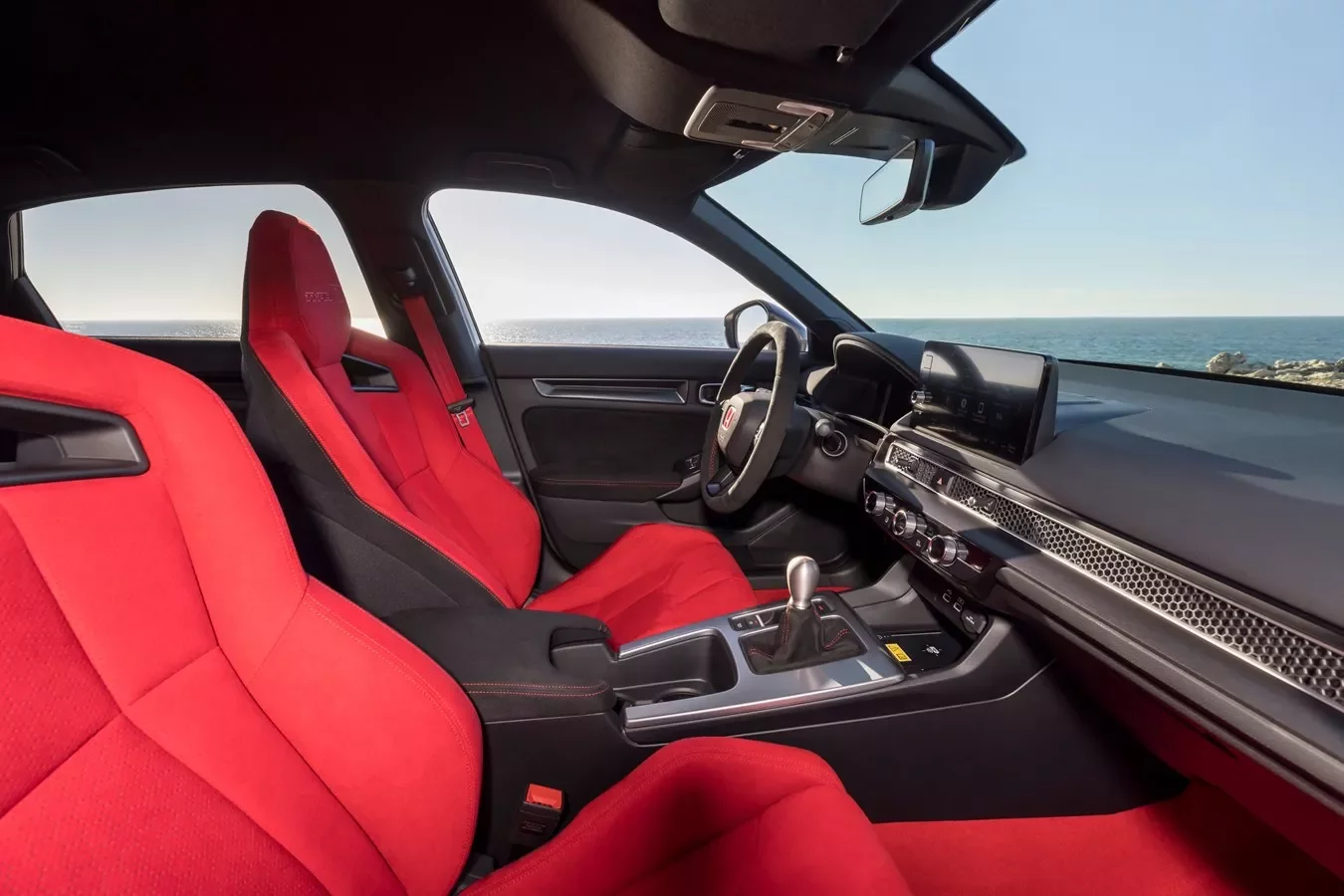 V interiéru vozu naleznete čalounění v karmínově červené. Plně přizpůsobitelný a digitální displej přístrojové desky, který je součástí standardní výbavy modelu Type R a tvoří základ centralizovaného uspořádání kokpitu s cílem zvýšit koncentraci řidiče během intenzivních zážitků z jízdy.