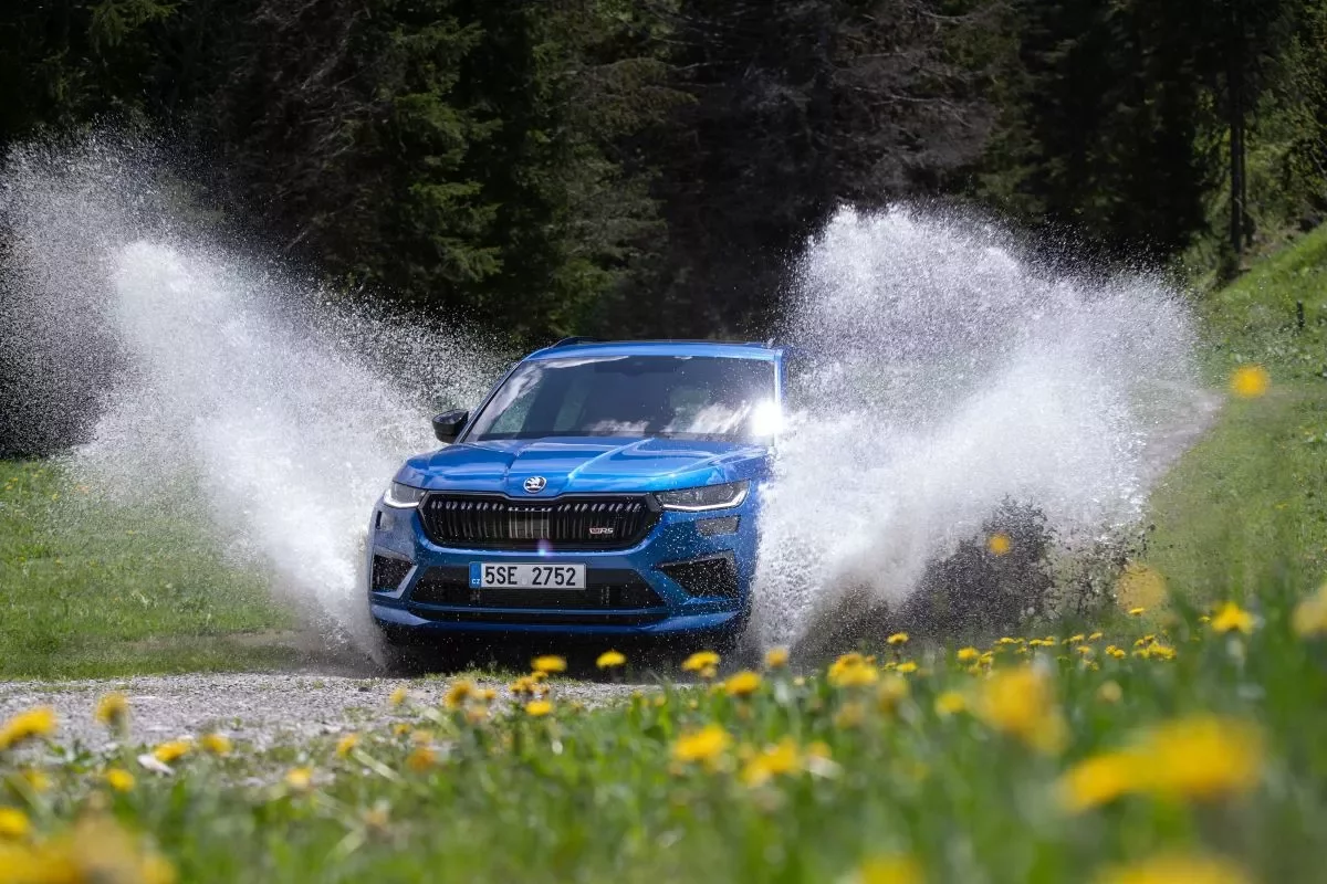 Došlo tím i k přeladění podvozku a celkového vyvážení auta. Benzinový Kodiaq RS působí nepatrně lehčím dojmem, podvozek je velmi neutrálně vyvážený, a jakmile v oblouku přidáte plyn, přejde do velmi mírné nedotáčivosti, naopak po ubrání mírně utáhne stopu. Spolu s akurátně nastaveným odpružením je podvozek nejen celkem zábavný, ale také dostatečně komfortní.
