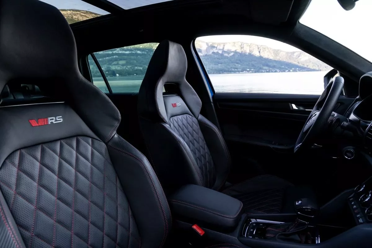 Uvnitř se můžete těšit na tříramenný sportovní volant, 10,25“ digitální budíky se sportovním motivem, nejnovější infotainment s úhlopříčkou 9,2“, červené prošívání palubní desky, sedadel, volantu, manžety voliče převodovky a loketních opěrek ve dveřích, nový motiv výplně dveří a nakonec samotné sportovní sedačky.