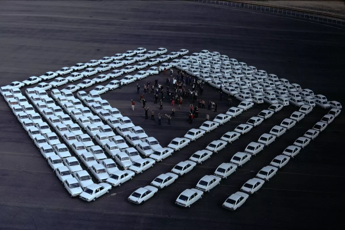 Podnik tedy využil své politiky Umění & Průmysl uplatňované od 1967, do které je zapojen malíř a sochař Victor Vasarely. Zakladatel optického umění spolu se svým synem Yvaralem vytvořil logo s rovnoběžnými pruhy, které bylo zároveň jednoduché i propracované, technické i estetické.