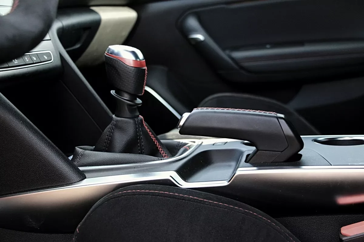 Další důležitou věcí jsou zmíněné sedačky, volant, řazení a poloha pedálů. Sedačky mají perfektní boční vedení a přitom jsou pohodlné, volant je tak akorát velký, s červeným stehem a páskem v středové horní poloze a stejně tak akorát silný. Řadicí páka padne přesně do ruky a řazení je hezky mechanické, rychlosti opravdu řadíte a cítíte tu mechanickou stránku věci. A ani poloze pedálů není co vytknout.
