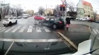 Kamera do auta natočila brutální dopravní nehodu v Ostravě. Jenom zázrakem se nikomu nic vážného nestalo.