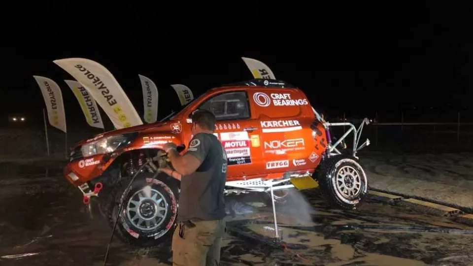 Jak se čistí závodní auta na Dakaru? Pomocí mobilní stanice v kamionu
