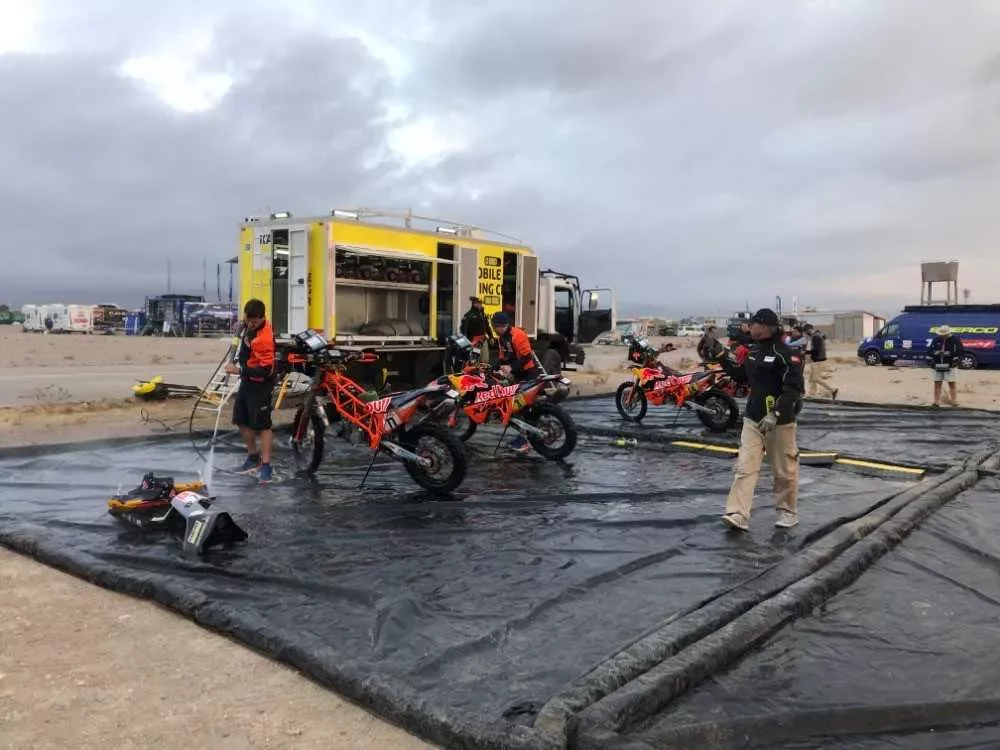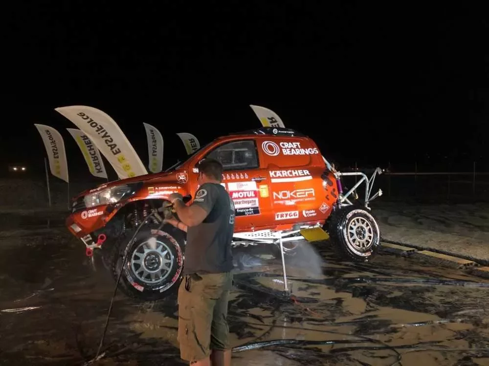 Závodní auta i motorky jedoucí letošní Rallye Dakar využívaly mobilní čisticí stanici zabudovanou do velkého 4x4 kamionu, který závodníky doprovázel po celou cestu. Kamion je vybaven profesionálními tlakovými myčkami, které umožňují všem týmům důkladně vyčistit jejich vozidla před dalším závodním dnem.