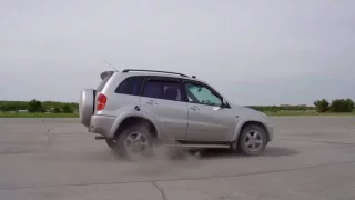 K pokusu posloužila Toyota RAV4 s automatem, která před začátek testování vypadala ve vcelku dobrém stavu. Na konci to bylo jinak. Vlad se nejprve rozjel a prostě zkusil zařadit zpátečku. Jenomže, jak už jsme řekli výše, nic se nestalo. Auto prostě pokračovalo dál.