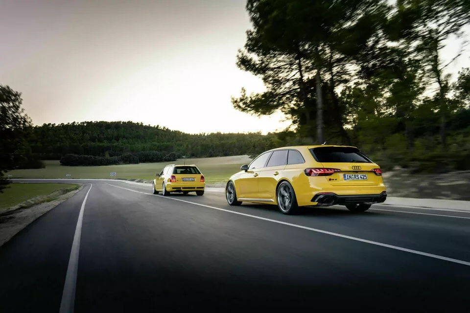 Audi zavedlo koncept sportovního kombi již v 90. letech minulého století s modely Audi Avant RS2 a S6 plus. Prvním modelem RS od společnosti quattro GmbH o byl Audi RS4 Avant generace B5 z roku 1999. Tento vůz měl oproti modelu S4 rozšířenou karoserii a šestiválcový motor s dvojitým přeplňováním, který byl vyvinut ve spolupráci se společností Cosworth a dosahoval výkonu 380 koní. Nejsportovnější verze první generace, RS4 Sport, debutovala v roce 2001 a zahrnovala například sníženou světlou výšku, skořepinová sedadla a sportovní výfukovou soustavu. Speciální edice RS 4 Avant edition 25 years nyní vzdává hold této historii a nabízí nejpokročilejší verzi současné modelové řady B9.