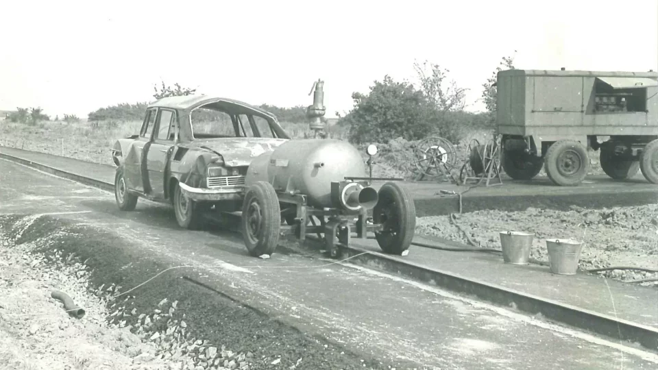 „Testovací dráhu i veškeré potřebné vybavení si pracovníci ÚVMV vybudovali a postavili prakticky sami,“ říká Tesárek. Sami si také navrhli a odzkoušeli pohonné zařízení - parní raketu, která sloužila k rozpohybování auta na požadovanou rychlost zkoušky. Základními provozními prostředky pro provedení zkoušky byla tehdy cisterna s vodou a dieselová elektrocentrála.
