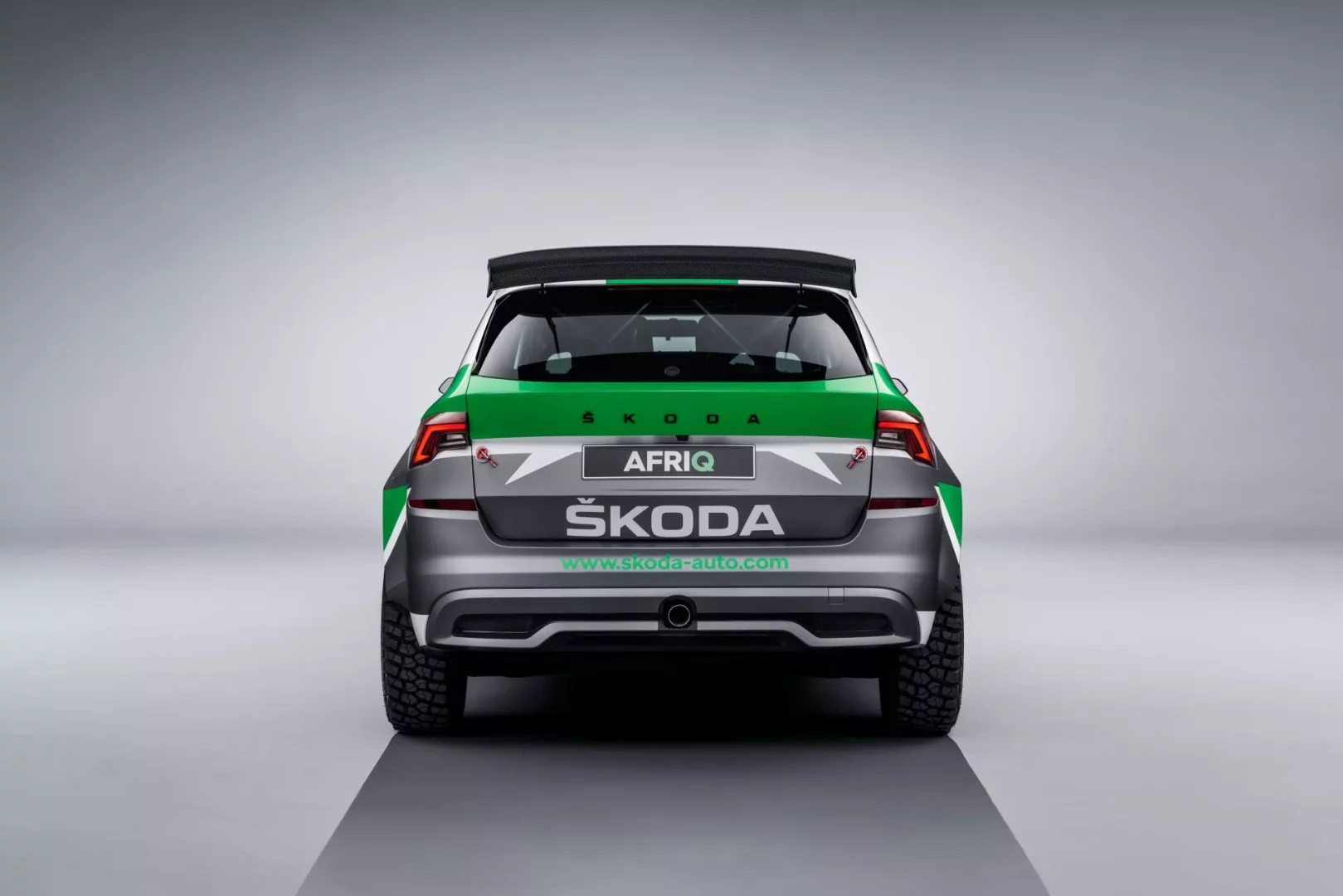 Jednoznačnou vizuální inspirací pro studentský vůz je soutěžní speciál Škoda Fabia Rally2 evo. A tak i Afriq je nalakován bílou barvou a opatřen četnými barevnými polepy v klasickém závodním stylu. Tyto samolepky si žáci navrhli sami ve spolupráci s oddělením Škoda Design. Sportovní a robustní vzhled podtrhují 15palcová kola OZ Racing.