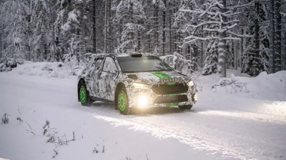 Škoda Fabia Rally2 testuje ve Finsku, podívejte se na ni v akci ještě pod rouškou kamufláže