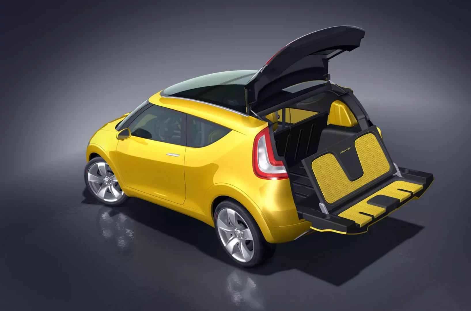 Ze studie Yeti bylo částečně převzato originální řešení zadních dveří, které jsou rozdělené na dvě části. Spodní díl se vyklápí ve dvou polohách. První část vodorovně navazuje na podlahu zavazadlového prostoru. Z vnitřní strany víka pak jde jednou rukou vyklopit druhý stupeň, který se upevní v mírně dozadu skloněné pozici. Tím se zadní dveře promění v lavici s nosností až 150 kg, určenou pro dvě osoby. Sedáky a opěrky pro záda jsou čalouněné.