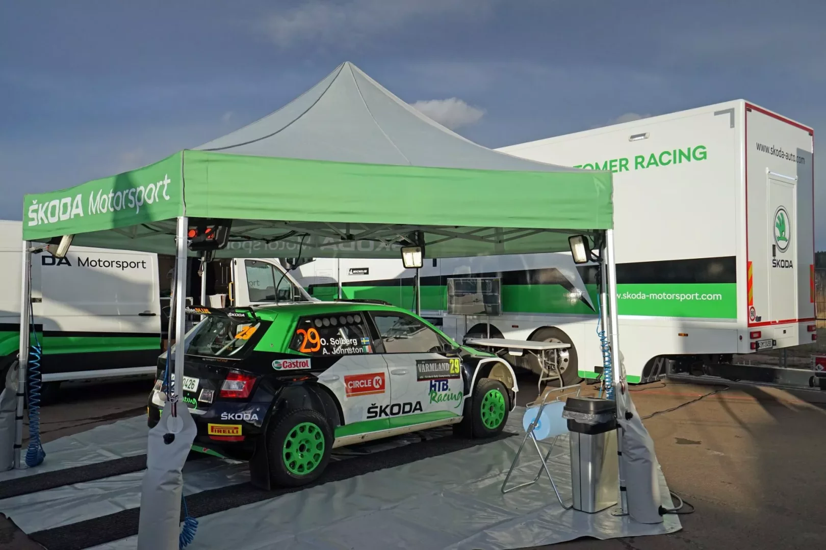 V neděli před začátkem Švédské rallye (9. února) Oliver Solberg a jeho spolujezdec Aaron Johnston vůz Škoda Fabia Rally2 evo naposled před soutěží vyzkoušeli. Následující den se otevřela servisní zóna a zástupci týmu Škoda Motorsport společně se specialisty týmu Oliver Solberg Racing připravili dílnu, stejně jako servisní stan a prostorné zázemí pro tým. Až do neděle bude tento prostor domovem pro všechny členy týmu. Okamžitě po konci soutěže v neděli odpoledne začala demontáž zázemí a konvoj Škoda se vydal zpět na svoji domovskou základnu v Mladé Boleslavi.