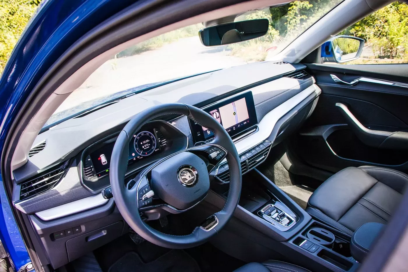 V interiéru je nová Octavie revolucionářem a ukazuje směr budoucích modelů z Mladé Boleslavi. Dvouramenný volant odkazuje na historické škodovky ze 60. let a látkou čalouněná palubní deska s prolomením směrem dolu se výrazně odlišuje od všeho, co jsme v posledních modelech škodovky viděli. Automobilka následuje nejmodernější trendy a rozhodla se omezit počet klasických tlačítek, takže většinu nastavení vozu provádíte na displeji infotainmentu.