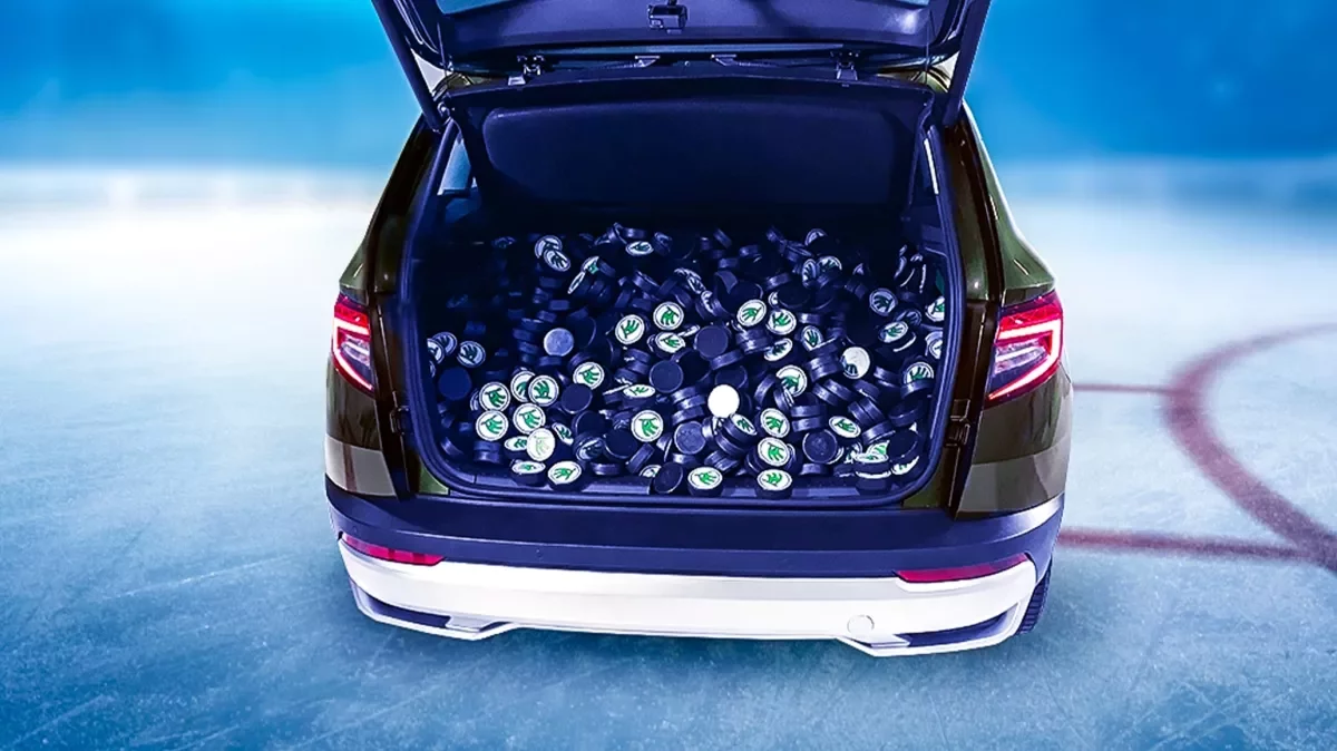 Škodovky jsou proslulé velkým kufrem. Vejdou se do Karoqu všechny hokejové puky potřebné pro mistrovství světa?