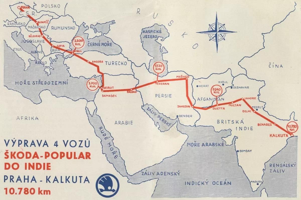 Před 85 lety, v sobotu 12. května 1934, odstartovala od pražského Autoklubu na cestu do Indie výprava čtyř polokabrioletů ŠKODA POPULAR, poháněných litrovými čtyřválci o výkonu 15 kW (20 k). Nový základ nabídky značky ŠKODA byl při vlastní hmotnosti asi 700 kg zatížen až 800 kilogramy posádky a nákladu. Sedm mladých cestovatelů vedených advokátem a československým reprezentantem v hokeji Zbislavem Petersem zamířilo do Indie přes Balkán, Turecko, dnešní Sýrii a Irák, jeden z vozů dokonce zvolil okliku přes Afghánistán.