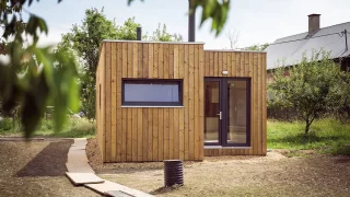 Statek nabízí i možnost přespat v jednom z 12 pokojů vytvořených přeměnou lodních kontejnerů, které architekti přetvořili v originální a pohodlné bydlení.