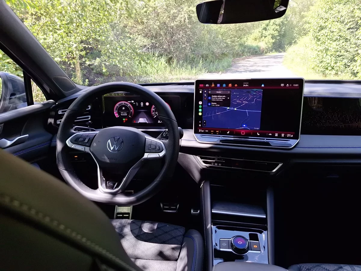 Pod kapotu nejvyšší výbavy R-line se Tiguanu dostal dvoulitrový dieselový agregát s výkonem 193 koní a sedmistupňovou automatickou převodovkou a pohonem všech 4 kol. A v tomhle ohledu s tím bylo potřeba i počítat. Při kratších vzdálenostech (do 20 km), a v podstatě při jízdě pouze po okreskách s nižšími otáčkami, auto spíše prezentuje to pomalejší ze svého jména – leguán. Naopak vyšší vzdálenosti, šlapání na krk a vytáčení do vyšších otáček, znamená u tohohle tahouna radost z jízdy a tygří dravý způsob vyjednávání pozice na silnici. Na klasické dieselové chování (při prudší akceleraci se „nadechne“) si zvyknete a sžijete se s ním kdykoliv, protože pokud vás, jako nás, potěší spotřebou 6,5l/100 km, tak nebudete mít žádné námitky. A negativní slova nepoužijete ani při komfortu, který pocítíte u delšího cestování, protože stejně jako u Passatu či už zmiňovaných nových Škodovek, sem dospodu přistál nový adaptivní podvozek DCC Pro, který mění tuhost u jednotlivých kol samostatně a tak z auta dělá mnohem stabilnější koráb při zatáčkách, pohodlnější postel a preciznější stroj, co se týká stylu řízení. A tohle všechno nejsou pouze papírové údaje, ale tvrdá realita… a nezastaví vás ani 20palcová kola (i když my bychom volili menší).
