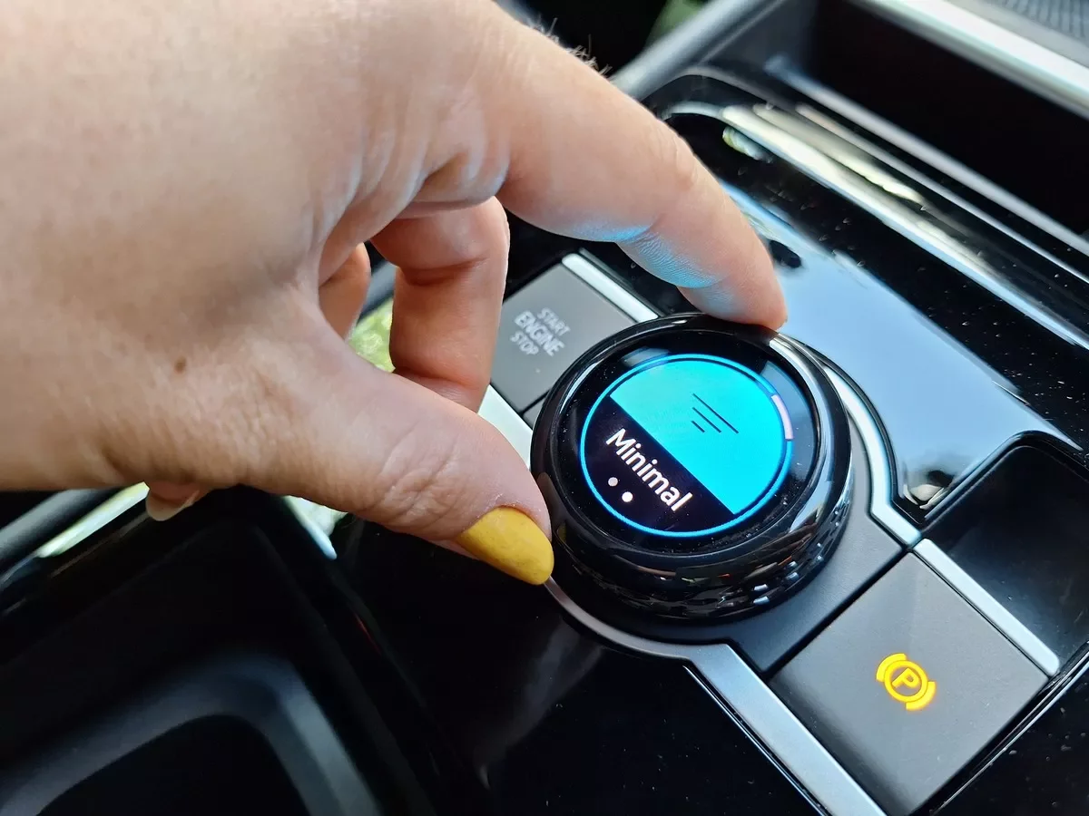 Co už ale vyžaduje diskuzi o vhodnosti jsou dvě věci. A to volič automatické převodovky, který se přesunul ze středu tunelu pod volant a známe ho už od bratrských Škodovek, kde nám to k nim prostě sedí více a pak je tu ve středu jeden volič otočenho/dotykového charakteru, který právě u mladoboleslavské automobilky mají v počtu 3, ale zde se omezily na řešení ve stylu „single“. Díky němu můžete ovládat hlasitost, a po zmáčknutí vyměnit jízdní režimy, ale tak si nějak říkáme „proč“. Tohle by se přeci dalo vyřešit elegantněji. Ale to je právě ono. Proti gustu a když se to zákazníkům bude líbit, tak pro nás/za nás.