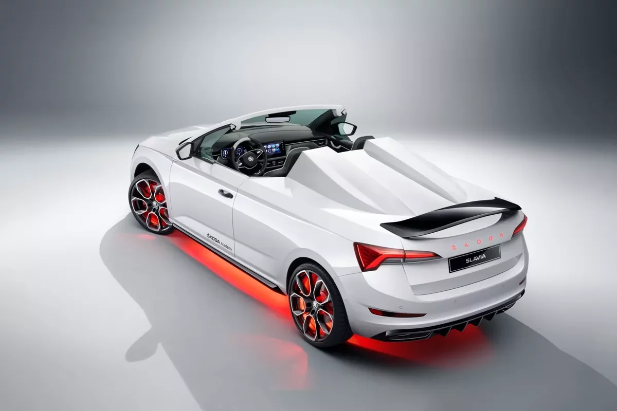 Stejně jako u sériového modelu Scala dodává i karosářské verzi spider sportovně-emocionální vzhled výrazný design, který se vyznačuje precizními liniemi a propracovanými plochami a který zaujme a nadchne. Odpovídající dynamiku poskytuje vozu Škoda Slavia benzinový motor 1,5 TSI o výkonu 150 koní, známý z modelu Scala, a sedmistupňová převodovka DSG. Ze sériového vozu pochází také přední a zadní náprava, řízení, kompletní elektronika včetně kabeláže i asistenční systémy. Nedotčena zůstala také palubní deska, Virtuální Kokpit a infotainment systém.