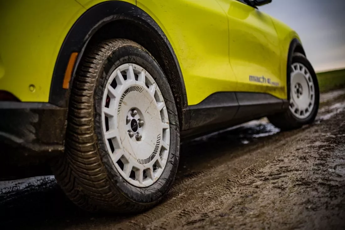 Volba pneumatik není vyloženě terénní, ale je to celkem fajn kompromis, aby auto fungovalo slušně i na silnici, kde, co si budeme nalhávat, stejně stráví nejvíc času. Přesto se musíte mít na pozoru, protože Mach-E je pořádný cvalík.