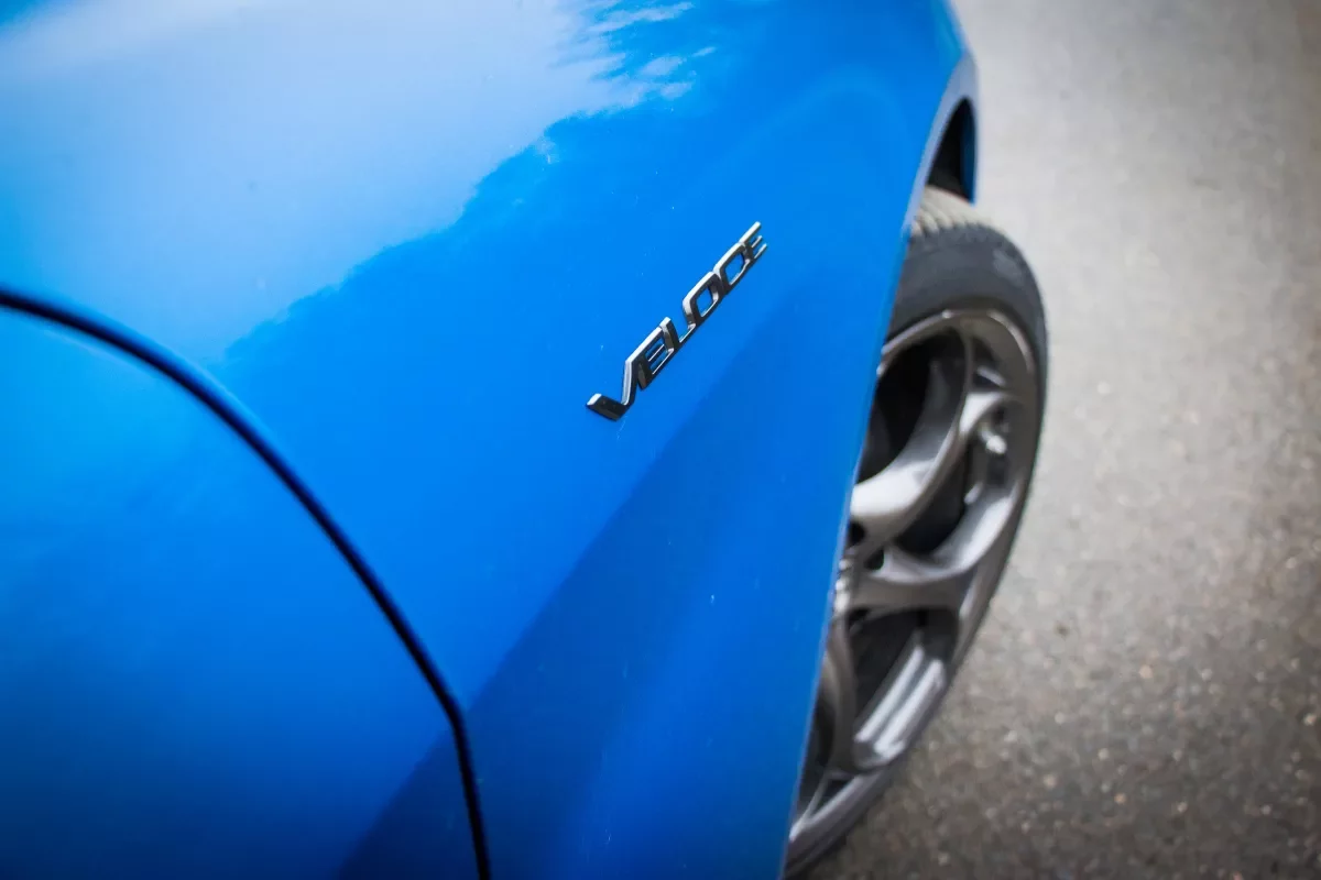 Sportovní sedadla s výrazným bočním vedením z modelu QV a elektrickým nastavením mohou být skoro až na podlaze, nohy máte lehce natažené k pedálům a ve svých rukách držíte volant s příjemně tlustým věncem a startovacím tlačítkem.