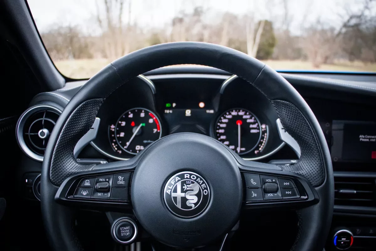 Za volantem pak nepřehlédnete obrovská hliníková pádla řazení, jejichž pozice je pevná. Ano, ve sportovních Giuliích si tak trochu připadáte jako v levných sedanech od Ferrari, k nimž nemají daleko. Na vývoj Giulie totiž dohlížel technický ředitel z Maranella.