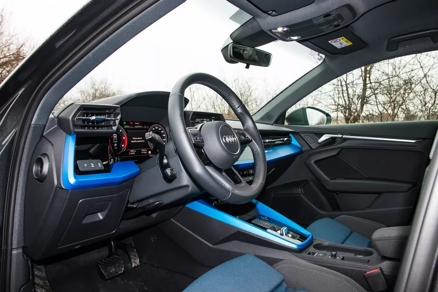 Kdyby Vám někdo zavázal oči a usadil Vás za volant, zřejmě byste ani nepoznali, že sedíte v sourozenci běžného koncernového modelu. Pozice za volantem s nízkým posezem je velmi podobná Golfu, ale jinak je v interiéru A3 všechno jinak.