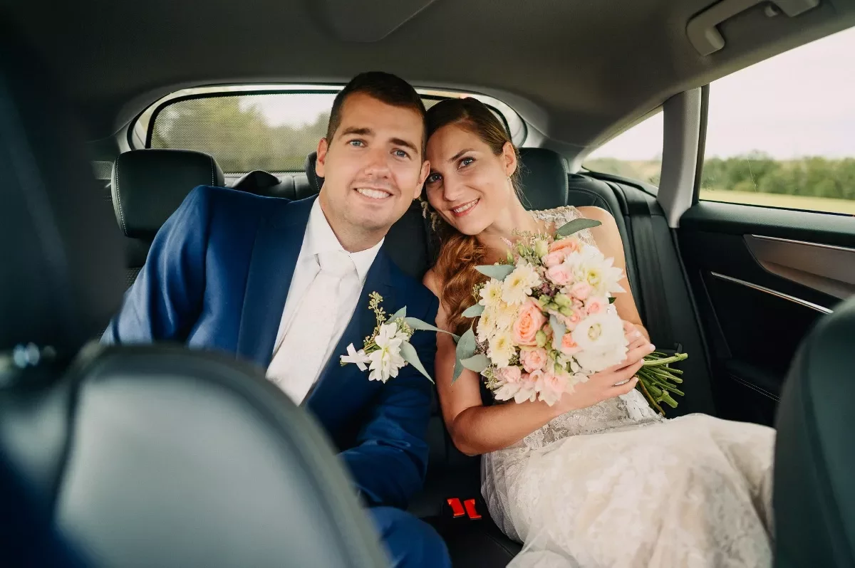 Pak přišla ke slovu drobná, ale hodně šikovná funkce. Pojistky zadních dveří. Vůbec netuším, jaké platí společenské zásady při svatbě, ale tak nějak jsme se hromadně shodli, že ženich vystoupí sám a nevěstě otevře dveře šofér. Ani nevím, jestli má sedět vlevo, ale tak to zrovna vyšlo, protože příjezdová cesta velela, aby nevěsta jakožto hlavní hvězda vystoupila k hostům na levou stranu.