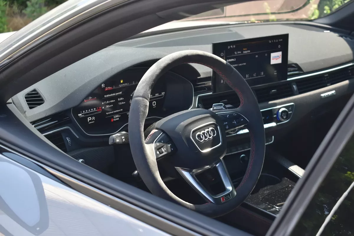 Audi má nádherný zvuk, jeden z nejhezčích, jaký jsem kdy u sériového auta slyšel. Klapky ve výfuku svádí k tomu, se na silnici předvádět, ale i když nemáte zrovna přepnuto na RS mód, zní dunivě. Zároveň se u auta povedla báječná věc, i v opravdu vysokých rychlostech můžete v autě mluvit se spolujezdcem, klidně naprosto potichu, a výborně se slyšet. Je to parťák na každodenní užívání, když je třeba.