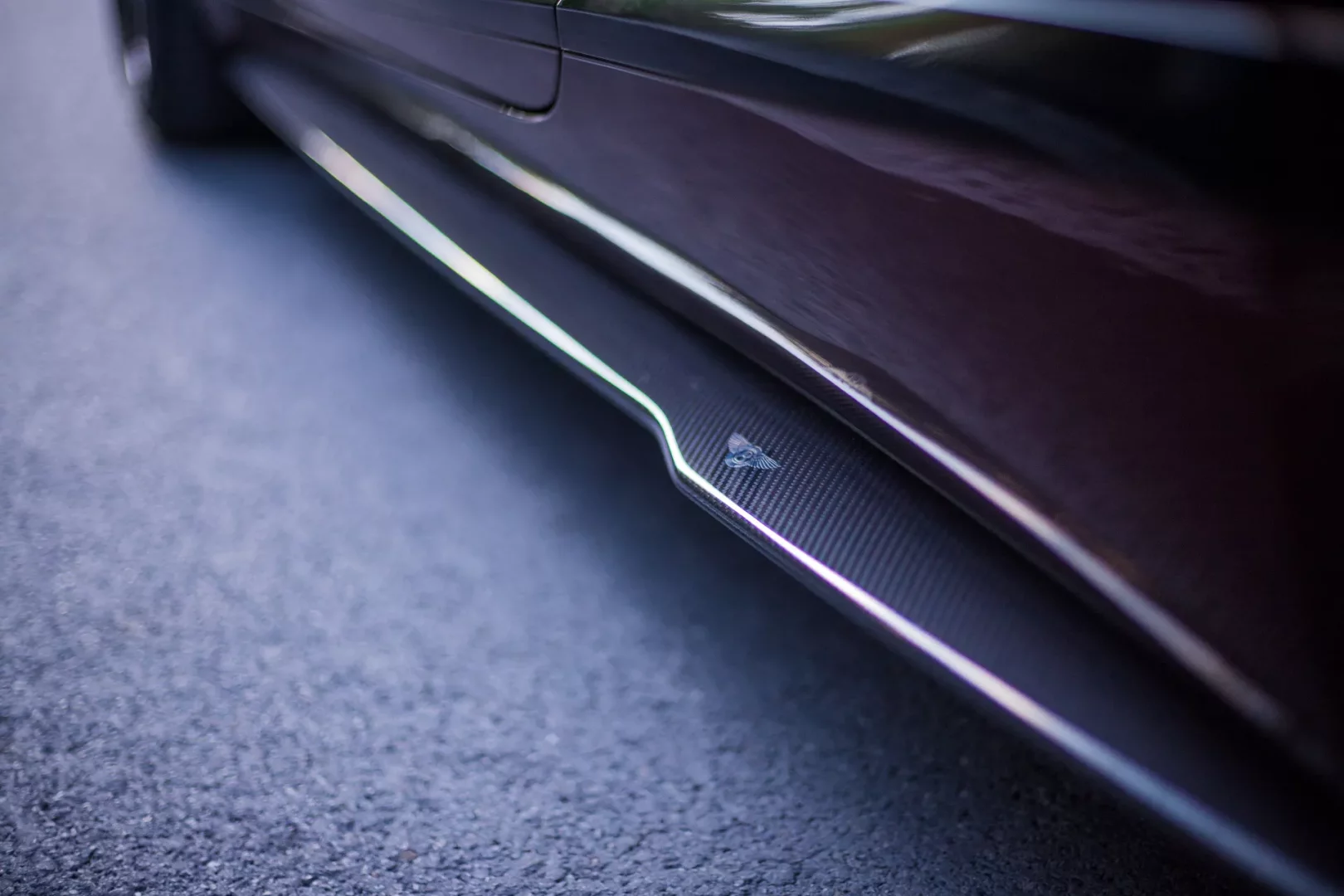 Vypadá to parádně, navíc tahle konkrétní specifikace se nadmíru povedla. Temně vínová v kombinaci s černou a karbonem má prostě šmrnc. Líbí se mi, když se v základu luxusní auto trochu přiostří, ale decentně a vkusně.