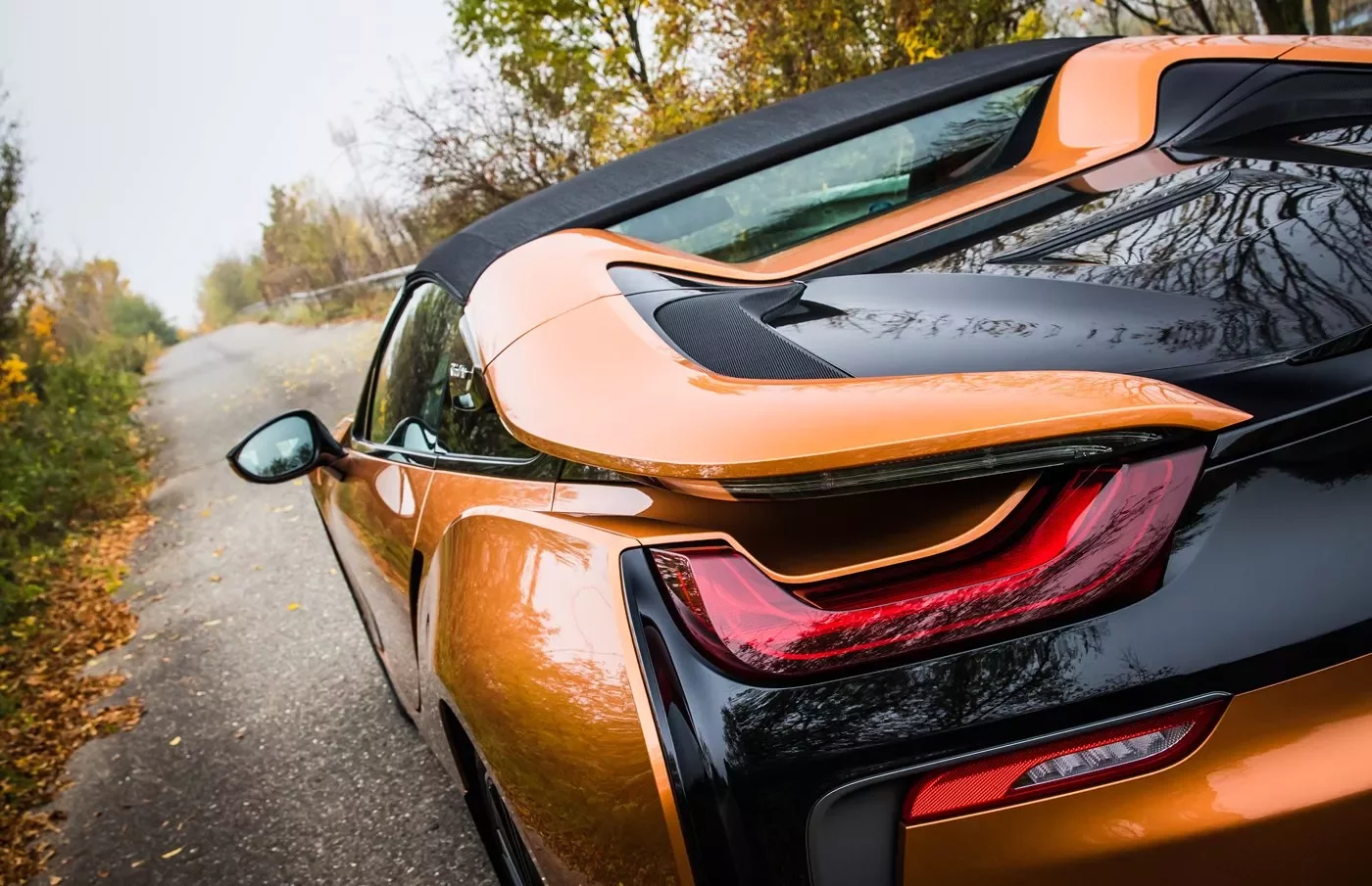 Modernizace se dotkla hlavně techniky, ale nelze tvrdit, že design zůstal beze změn, ačkoli vypadá stejně. BMW i8 dlouhé roky existovalo pouze jako kupé, ale při modernizaci byla představena i dlouho očekávaná verze Roadster. Zatímco původní kupé dokázalo splynout s okolním světem, protože nabídku laků tvořily odstíny šedé, Roadster s příplatkovým lakem Tera World Copper neustále strhuje pozornost dětí i dospělých. Otevřenou i8 testuji už několikátý den a dětská oznamovací fráze „Mami, dívej!” mi začíná připadat trochu otřepaná. BMW i8 Roadster je autem pro extroverty, introverti se v něm pod palbou pohledů nebudou cítit dobře.
