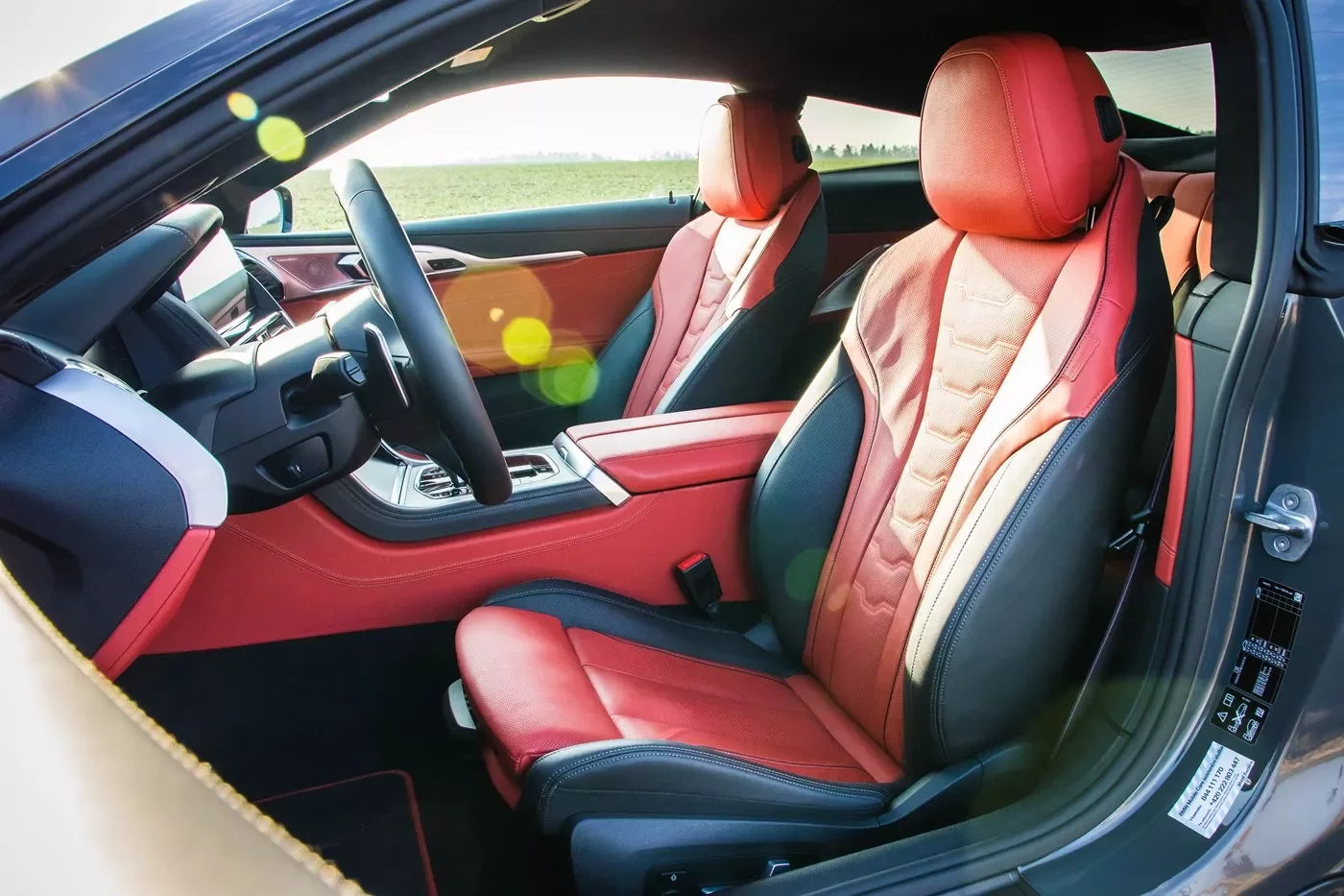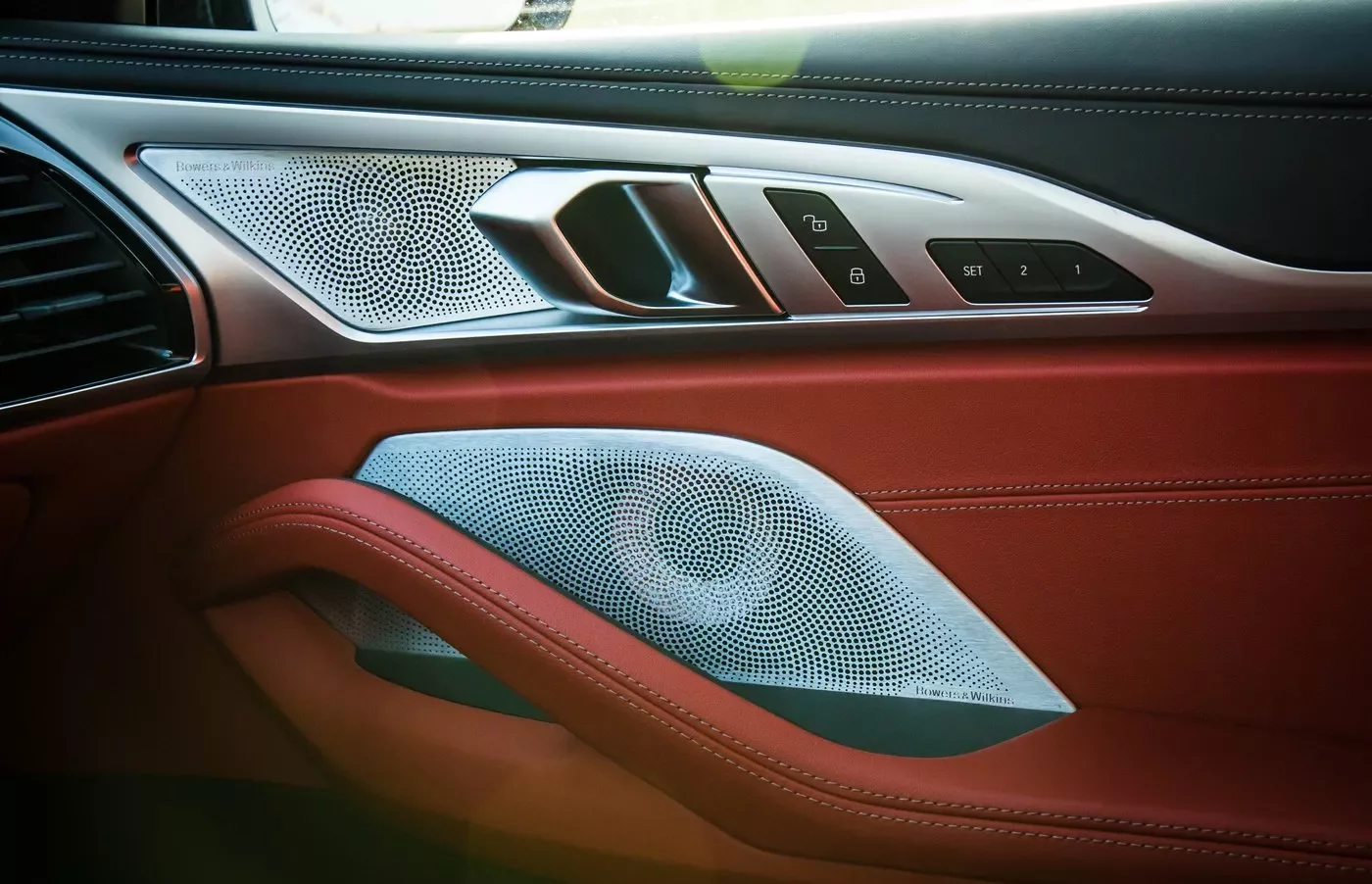Kontrastem k zdánlivě nenápadnému šedivému exteriéru je interiér, který by nenechal v klidu leckterého býka. Kombinace červené a černé kůže Merino je agresivní a každé zákoutí interiéru se může pochlubit špičkovým zpracováním, na které jsme u BMW zvyklí. Osmička patří k vrcholným modelům BMW, takže ji nechybí ovládací prvky vyrobené z křišťálu a testované auto bylo vybaveno kvalitním příplatkovým audiem Bowers & Wilkins Diamond, které se vyznačuje designovými mřížkami reproduktorů z nerezové oceli.