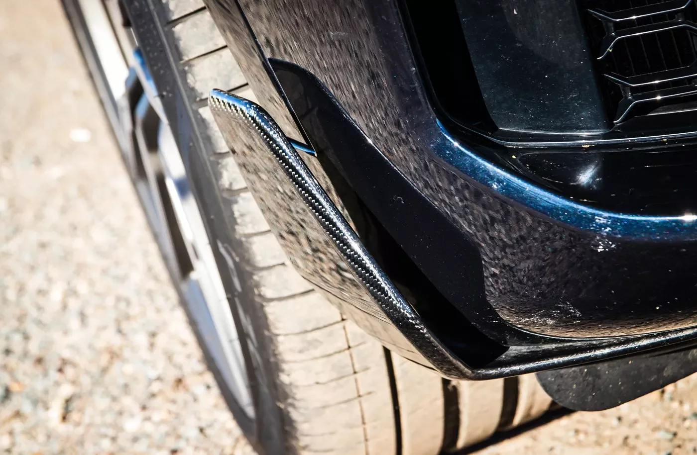 Adaptivní podvozek s příplatkovými 22” koly je pro každodenní ježdění možná až příliš tuhý, ale při sportovní jízdě funguje bezchybně, omezuje náklony karoserie a umí tlačit proti fyzikálním zákonům, ale oklamat je neumí. Když se odvážíte zašlápnout plyn do podlahy a zkoušet limity 2,3tunového kolosu, jako první přestávají stačit pneumatiky. Netrvá to dlouho a najdete hranici přilnavosti, při které pneumatiky pod těžkým osmiválcem hledají kompromis mezi zatáčením a přenášením masivní síly motoru na asfalt.