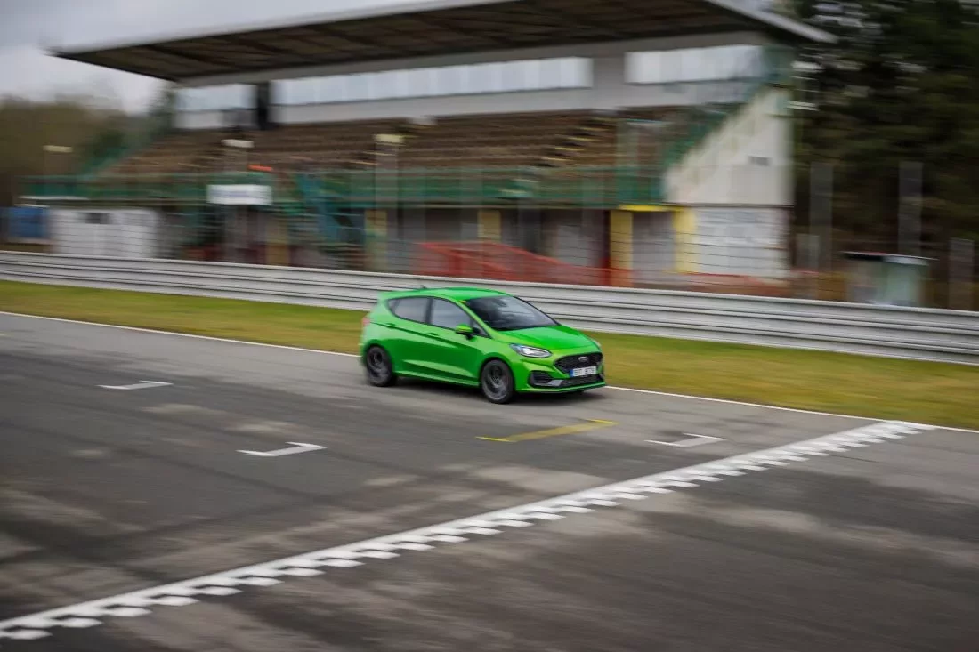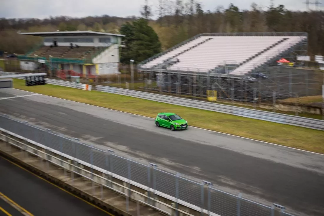 Jak trať ke konci dne pomalu osychá, až na ní lze jet konečně ostrým tempem a čistou stopou, odhaluje Fiesta ST svoji druhou, vážnější tvář. Vedle té party, kterou neustále předvádí zadní náprava, totiž předek zastává seriózní byznys a Fiesta ST tak dokáže fungovat i jako dospělý okruhový stroj.
