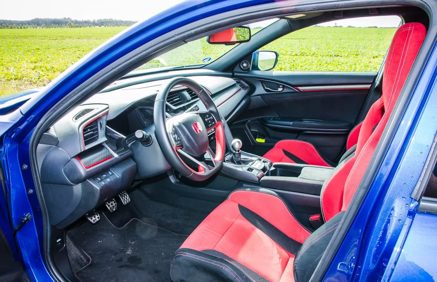 I když se mi líbí barevné ztvárnění interiéru a pozice za volantem na krátké ruce a dlouhé nohy, některé prvky interiéru jsou trochu rozporuplné. Digitální přístrojový štít s velkým otáčkoměrem je přehledný, ale jeho rafička je méně výrazná a mohla by být delší. Vylepšit by se dal i ukazatel zařazeného převodu, protože je pouze malým číslem v červeném čtverečku v levém horním rohu. Rozhraní umožňuje zobrazení ukazatelů plnícího tlaku, aktuálního otevření škrticí klapky, tlaku v brzdovém systému a dalších informací, ale bohužel neumí ukázat teplotu motorového oleje, což by v autě, jako je Civic Type-R, nebylo od věci.