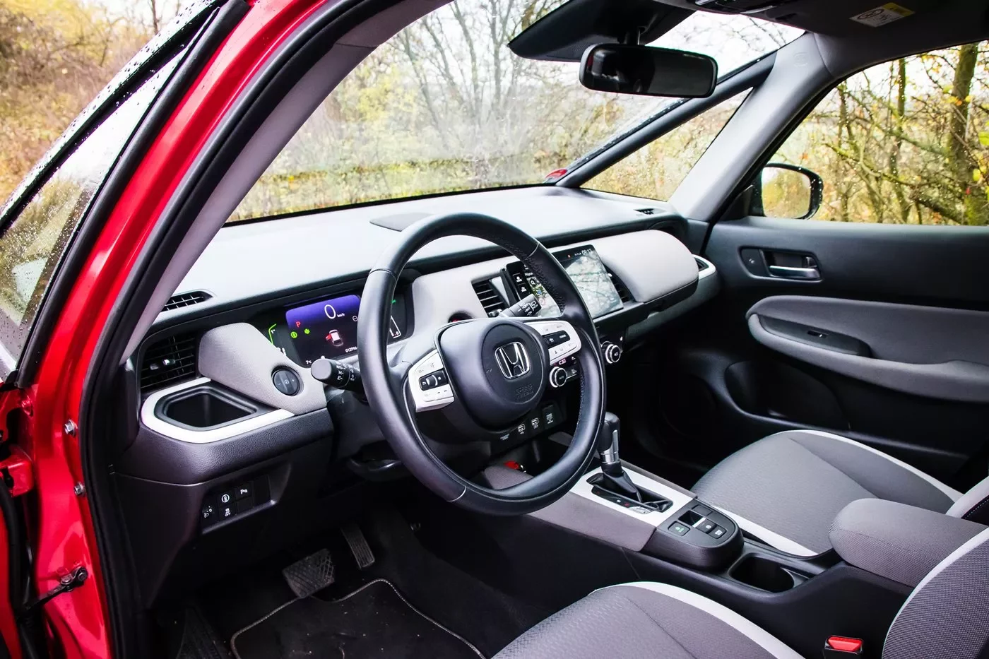Prostorný interiér Crosstaru se nijak neliší od toho v běžném Jazzu a svým stylovým provedením připomíná futuristický elektromobil Honda e, ale na technologické vychytávky v Jazzu zapomeňte. Jazz ale prošel digitalizací a nejenže je vybavený dnes už standardním dotykovým displejem multifunkčního systému, ale také se může pochlubit digitálním přístrojovým štítem s jednoduchou a snadno přehlednou grafikou.