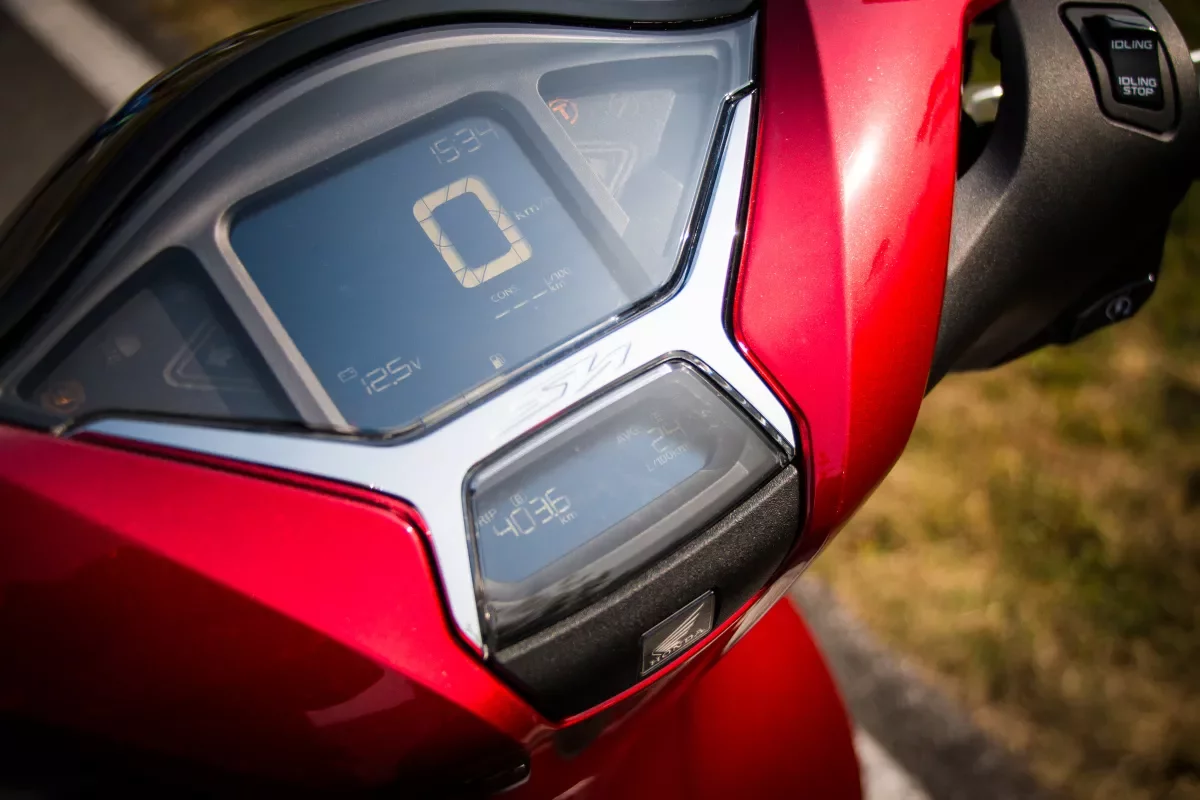 Pocitu bezpečí za řídítky napomáhá i ABS, které dnes už není u motorek výjimkou, a také kontrola trakce. Ne že by zprvu vláčný přenos síly přes variátor umožňoval nějaké burnouty, ale třeba na prašné cestě už si hrábnout můžete. Honda SH125i vás ochrání.