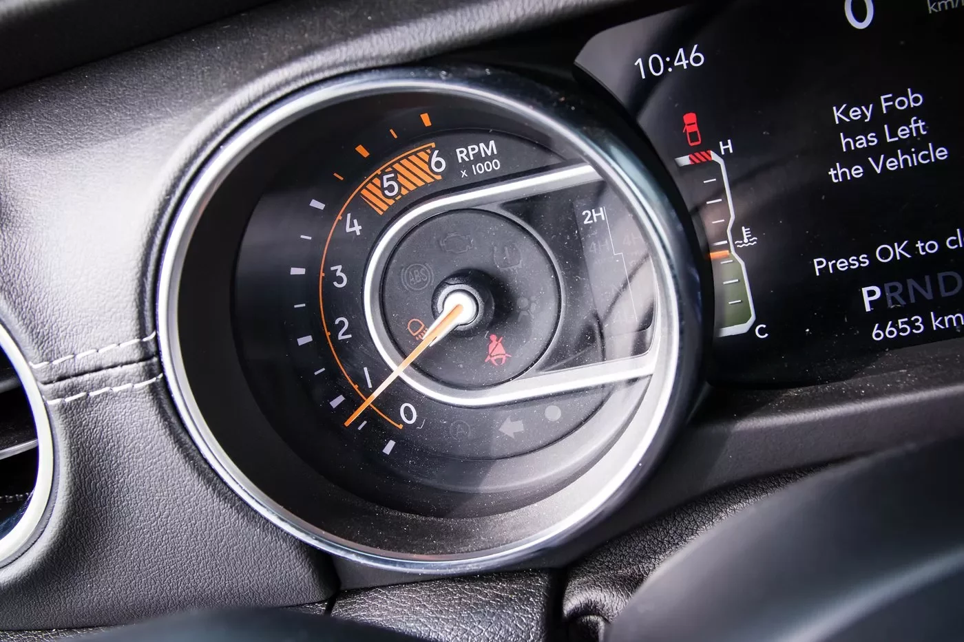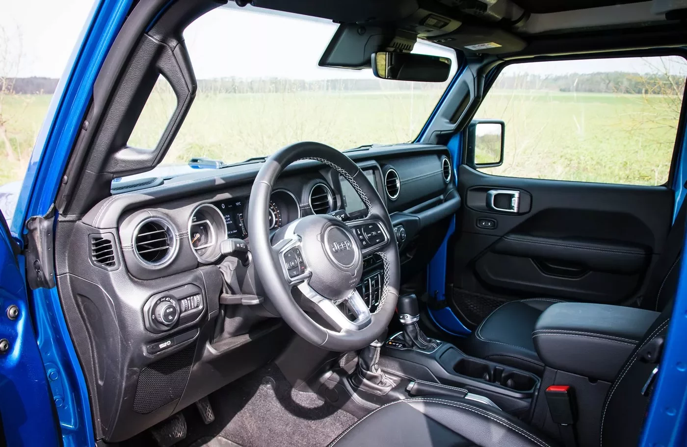 Gladiator je pracovitějším sourozencem oblíbeného Wrangleru, ale to neznamená, že se spokojí s chudým interiérem. Když otevřete dveře, levou nohou se postavíte na stupačku, přitáhnete se za vnitřní madlo na sloupku, natáhnete pravou nohu směrem k pedálu plynu a spustíte se na sedadlo řidiče, zjistíte, že v něm opravdu nic nechybí.