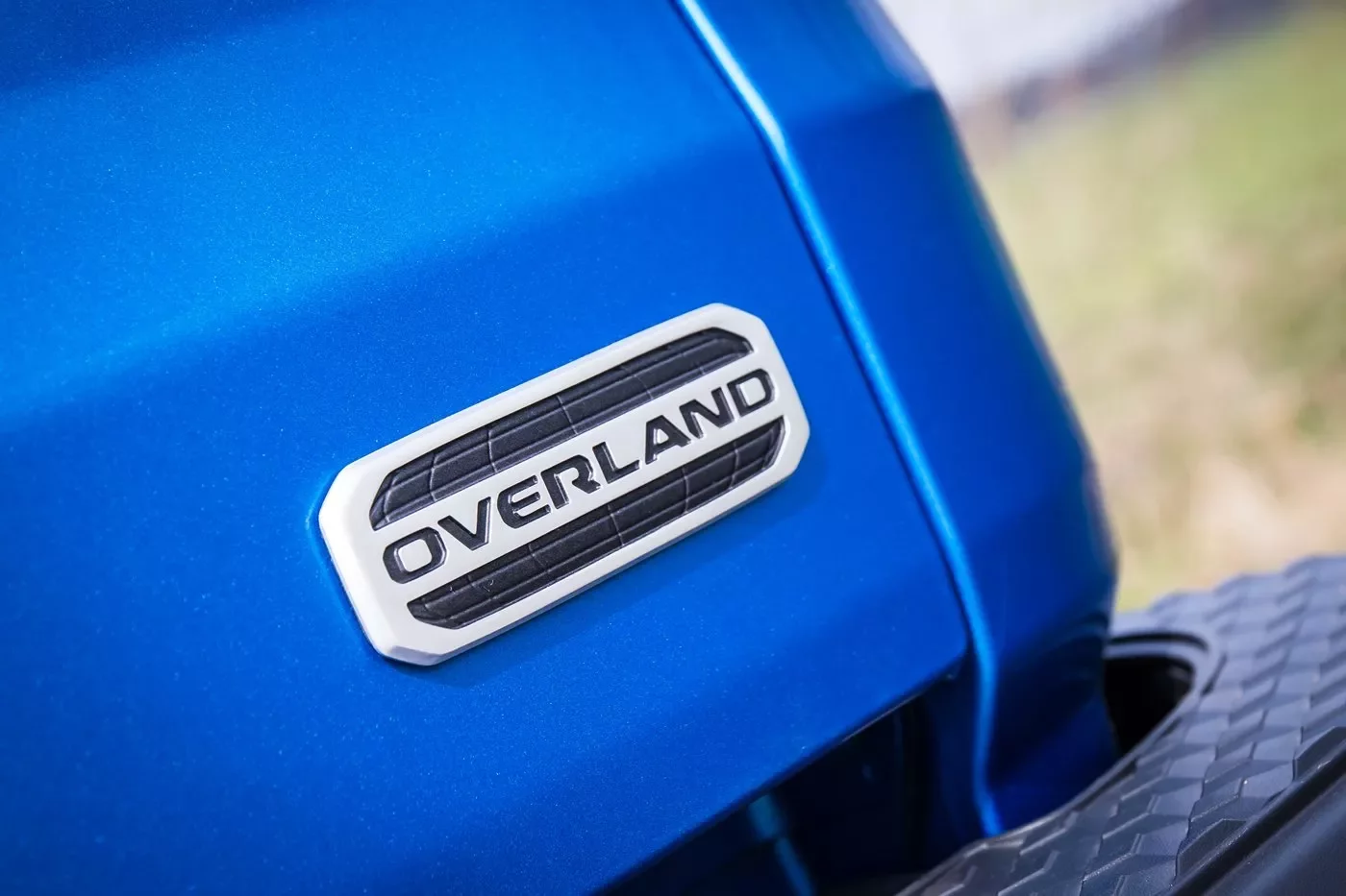 Přístrojovému štítu s klasickými budíky nechybí displej s většinou jízdních údajů, infotainment umí ukázat spoustu dalších jízdních dat, včetně náklonů vozu, teploty a tlaku motorového oleje nebo teploty převodovky, a výbava obsahuje všechno, co najdete v normálních autech. Teď se však samozřejmě bavíme o nejvyšší výbavě Overland s koženými sedadly a výkonným audiosystémem Alpine s přenosným reproduktorem za zadními sedadly, který je dokonce vodotěsný.