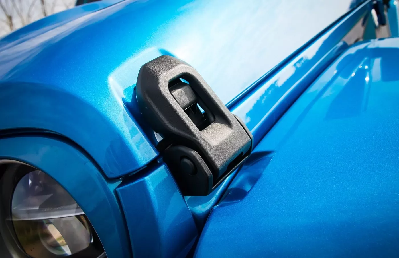 Kapota se zajišťuje jednoduchými zámky (hlídanými alarmem), na bocích nechybí masivní stupačky, které oceníte při nastupování do vozu, a karoserii samozřejmě můžete odstrojit. Gladiator totiž není konstrukčně složitým autem.