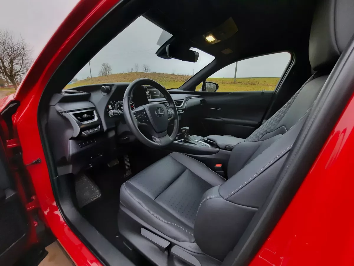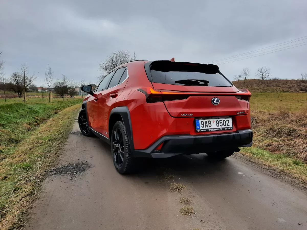Všestranný městský crossover, který se poprvé veřejnosti představil v roce 2019, celkem tedy mladý model, vyniká mezi ostatními svými ostrými hranami a svou vřetenovitou maskou, která je v našem provedení černá uprostřed s typickým znakem „L“. Spodní orámování má maska chromové a Lexus tak vyjadřuje jakýsi přikrčený postoj vozu. Chrom se objevuje i na zrcátkám či na rámováním oken. Specifika nalezneme i na zadní partii, které vévodí ostře řezané propojené světlomety doplněné černým střešním spoilerem. Celý vizuál vozu, který jsme měli v červené barvě, byl doplněn 18" koly s tmavou metalickou úpravu.