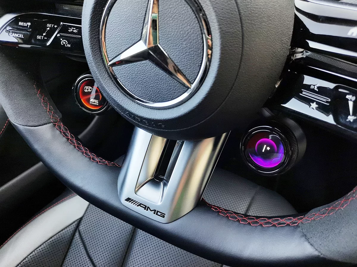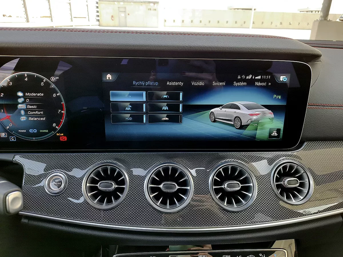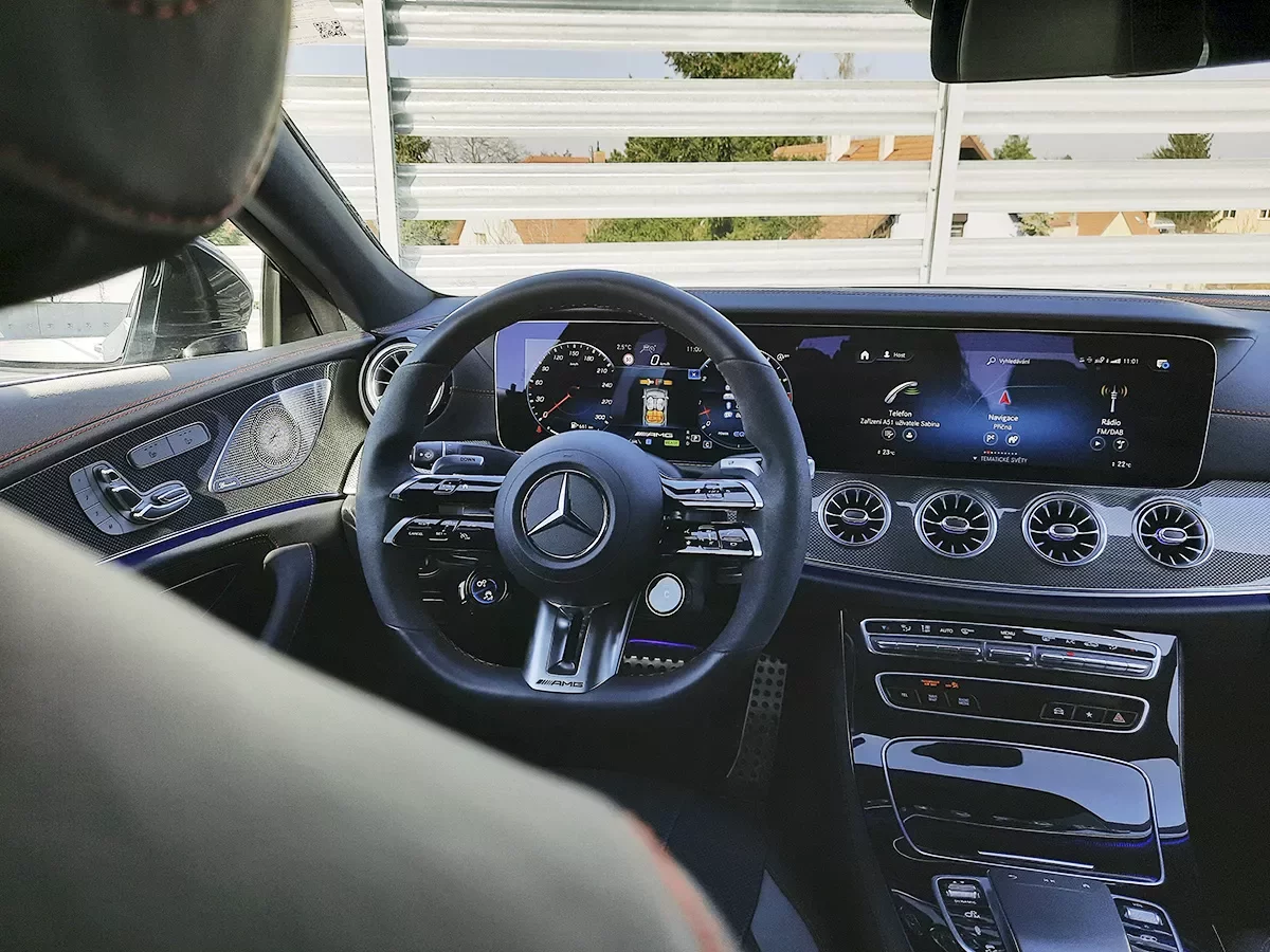 Model CLS obdržel v rámci modernizace i nově navržený multifunkční volant obšitý kůží Nappa s černě lesklými rameny (kromě toho vespod). Co jsem ocenila byly dvě nová kulatá tlačítka, díky nimž jsem měla zjednodušený přístup například k manuálnímu řazení, ovládání podvozku, výfukovým klapkám, zadní kameře nebo jsem si mohla měnit jízdní režimy.