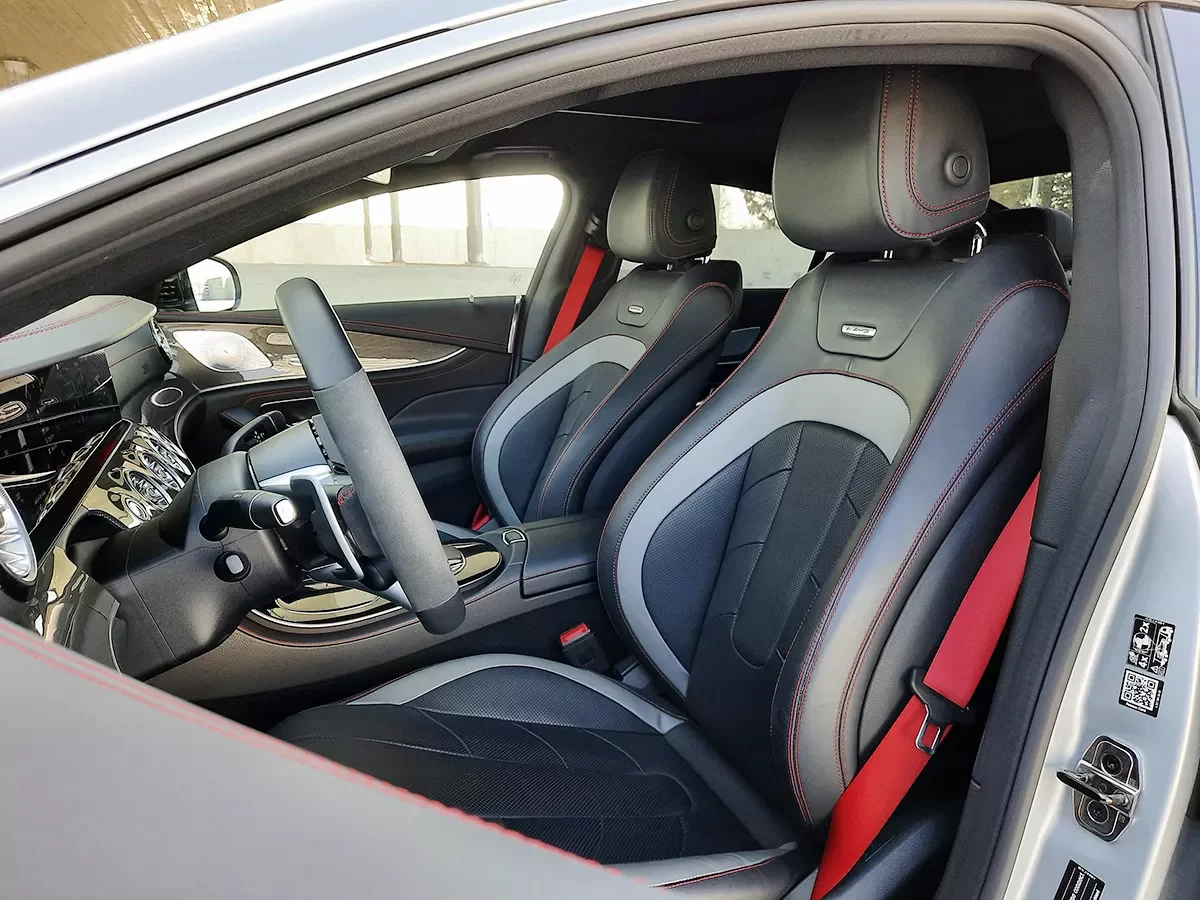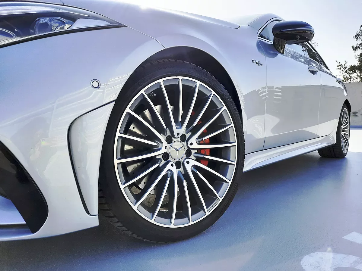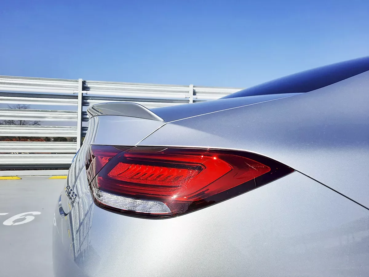 Když na Mercedesu naleznete ona sladká 3 písmena „AMG“, tak víte, že máte k dispozici to nejlepší a že díky tomu pocítíte onen sportovnějších nádech vozu. CLS má tak nově tvarovanou přední partii se sportovním nárazníkem AMG křídlovitého tvaru s černými aerodynamickými plochami a viditelnými otvory pro vedení vzduchu do podběhů kol, který doplňuje charakteristická maska chladiče AMG s vertikálními lamelami. Nechybí ani rozšíření bočních prahů AMG a odtoková hrana na víku zavazadlového prostoru. Co mě na onom vizuálu ale bavilo nejvíc, byla 20palcová kola s červeně lakovanými brzdovými třmeny s černým nápisem AMG v kombinaci s výfukovým systémem AMG Performance zakončeným čtyřmi pěknými stříbrnými koncovkami. Němcům se prostě neupře ten cit pro detail.